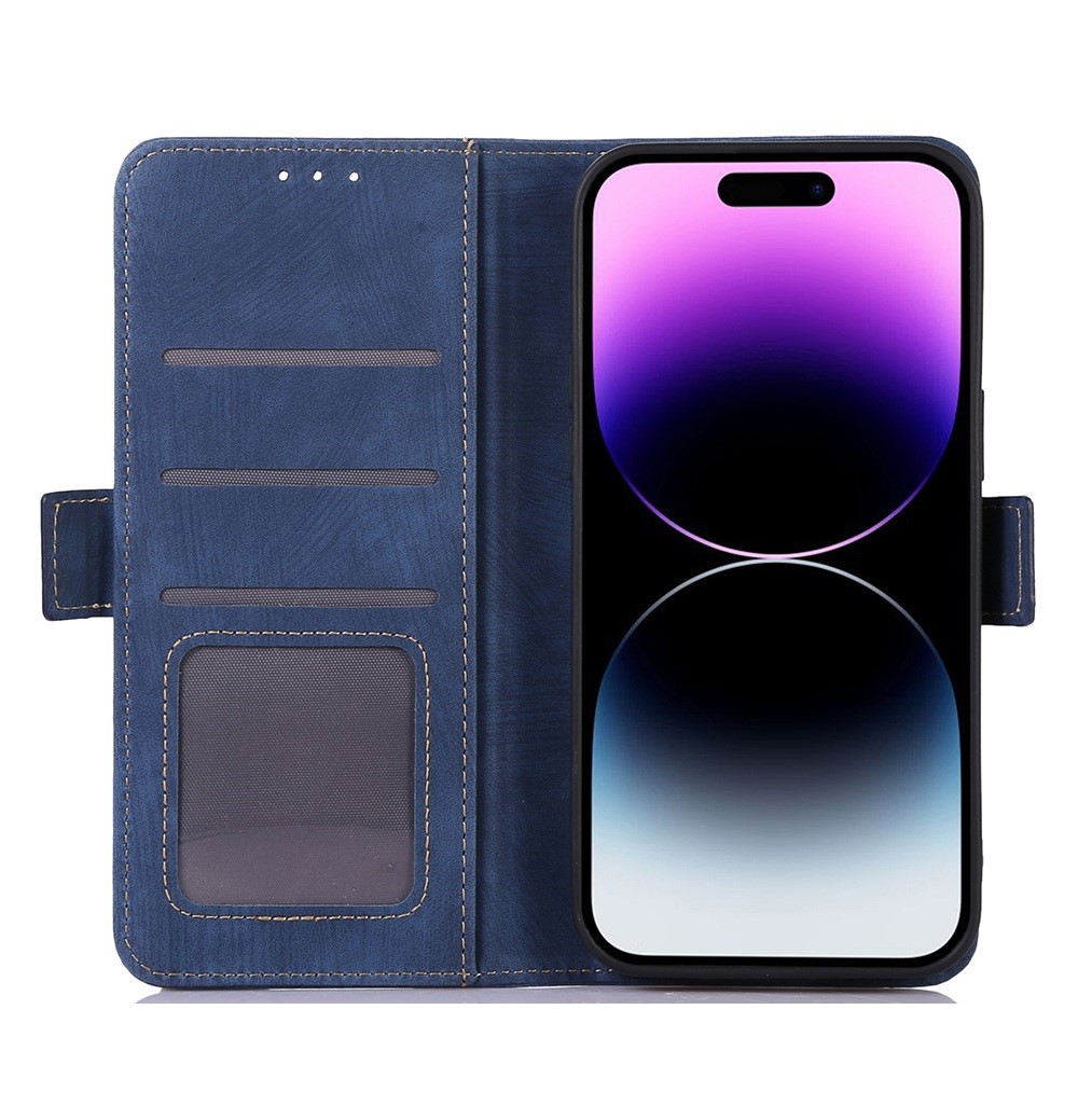 Hoge kwaliteit Lederlook boekmodel hoesje special ontworpen voor iPhone 15 Pro. Dit hoesje is gemaakt van hoogwaardige TPU materiaal en heeft een extra zachte achterkant waardoor het lekker en comfortabel in de hand voelt. Aan de binnenkant biedt het hoesje ruimte aan pasjes en extra opbergruimte voor briefgeld en documenten. De strakke afwerking van het hoesje zorgt dat alle functietoetsen en aansluitingen toegankelijk blijven. De sparringen zorgen ervoor dat alle knoppen, toetsen, camera’s bereikbaar zijn. Dit hoesje is een uitstekende bescherming tegen kras, val en stoot. De krachtige magneetsluiting zorgt ervoor dat het hoesje dicht blijft en verkleint de kans op valschade. Dit hoesje is tevens voorzien van een stand functie om met gemakt handsfree video’s en filmpjes te bekijken.