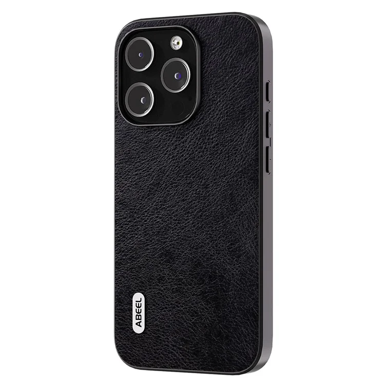 ABEEL – Backcover iPhone 15 Pro Max – Cowhide Leather – TPU – Litchi – Anti-Scratch – Zwart
