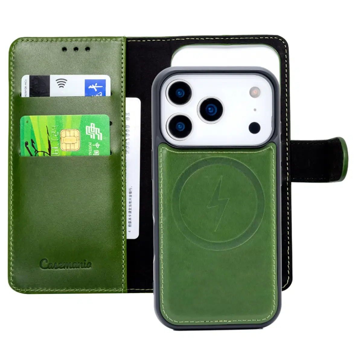 Casemania 2-in-1 Bookcase Hoesje | Echt Leer | iPhone 17 Pro Max -Groen