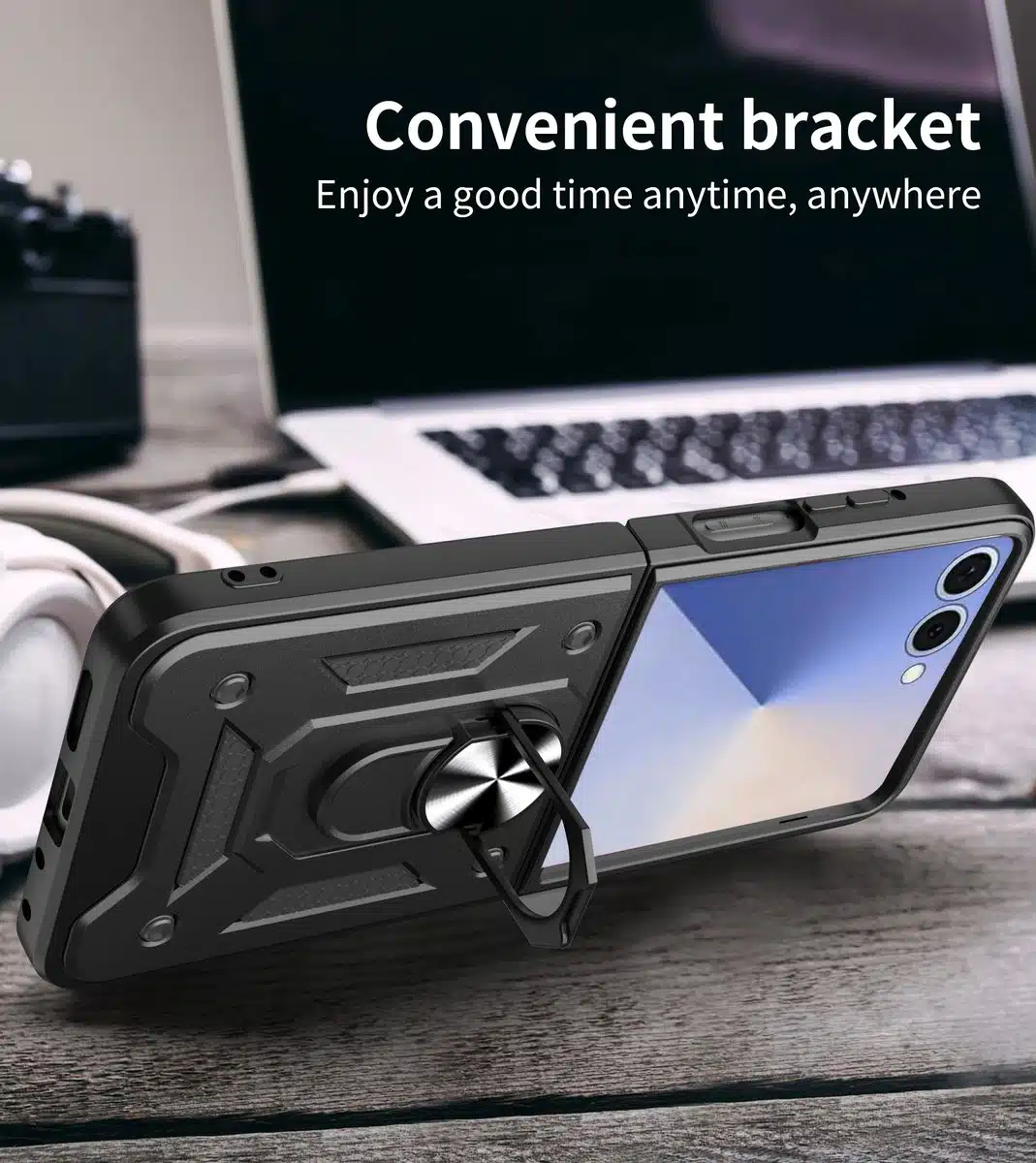 Casemania – Backcover Armor – Geschikt voor Samsung Z Flip 7 met ring – Zwart