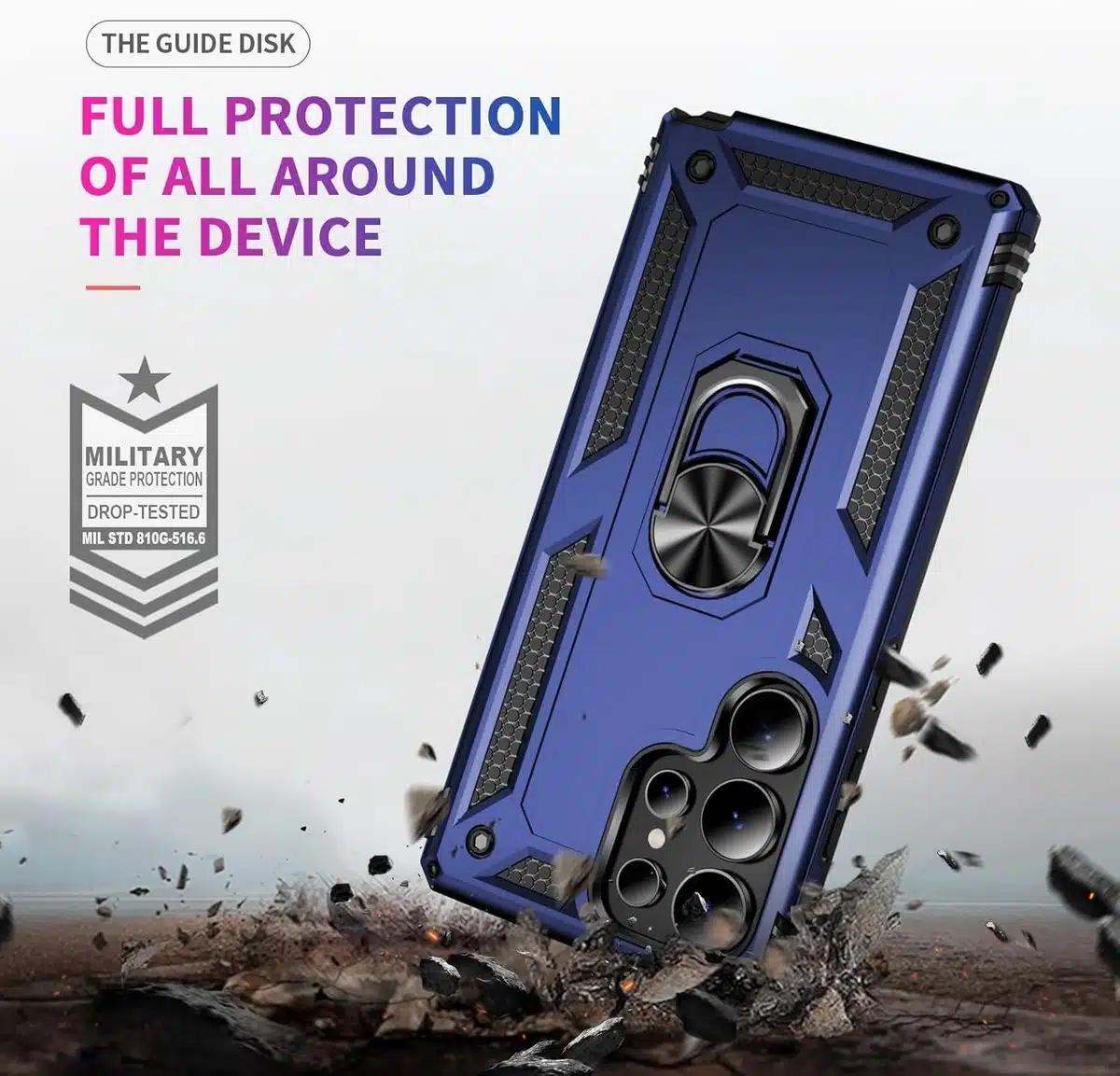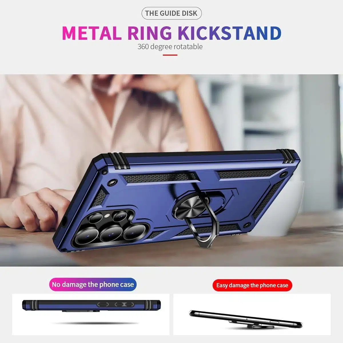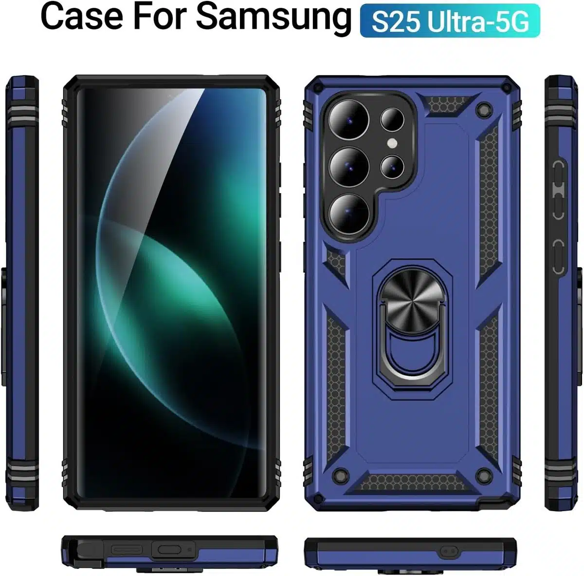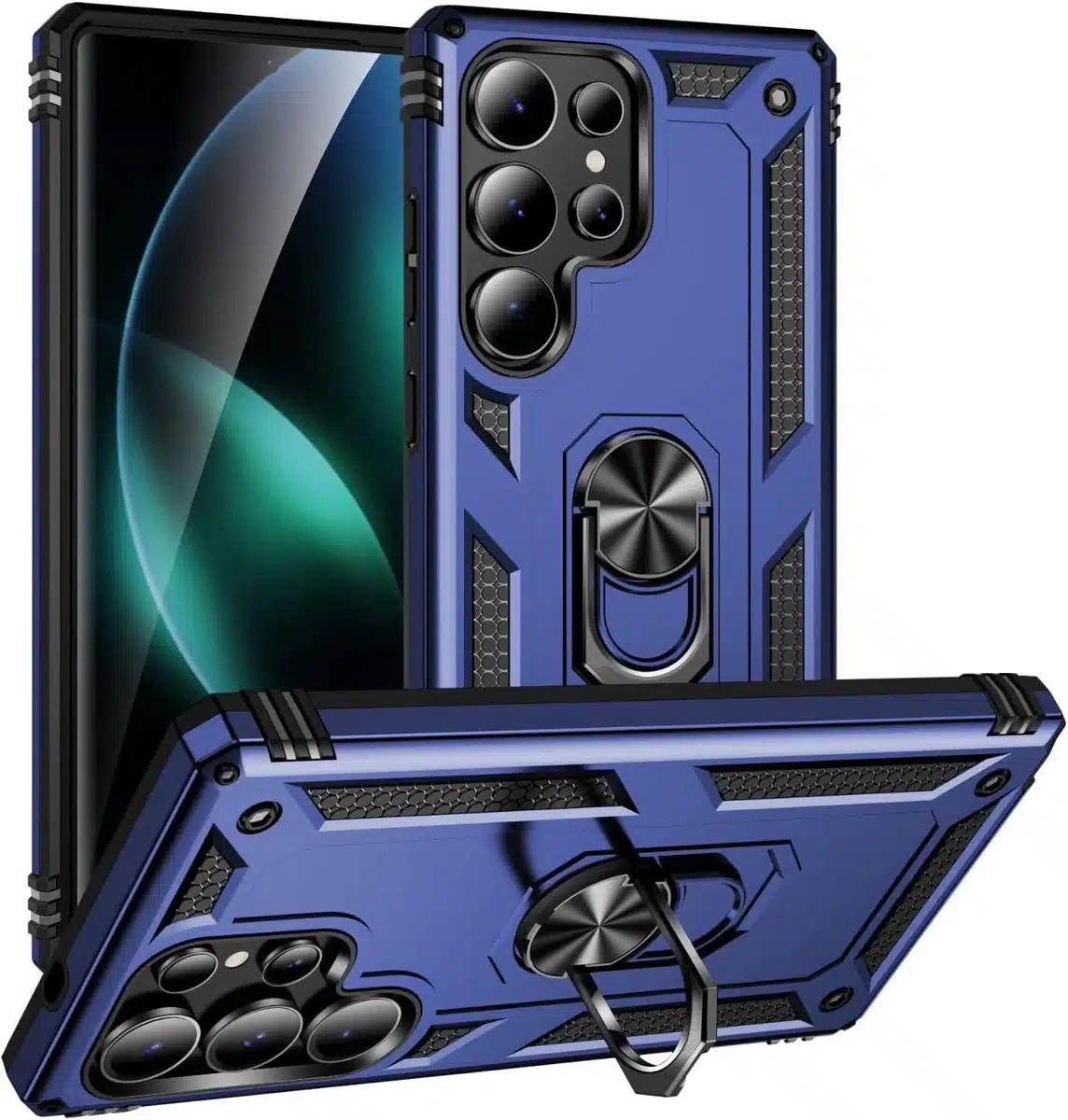 Casemania – Backcover Armor Kickstand Ring – Geschikt voor – Samsung S25 Ultra – Blauw