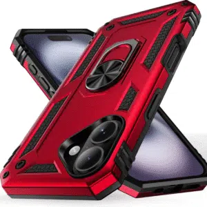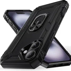 Op zoek naar een stoere case voor je iPhone 17 ? De Ring Kickstand Cover beschermt jouw toestel optimaal en biedt tal van handige functies! Het Dual-Layer ontwerp absorbeert iedere schok en houdt jouw iPhone 17 veilig. Zo ligt de lens van de camera verzonken, is het scherm omgeven door een stevige bumper van TPU en worden zelfs de knoppen netjes beschermd.Geef uw mobiele telefoon met dit hoesje een strakke en robuuste uitstraling. Het Backcover met Ring kickstand is Shock Proof en gemaakt van TPU kunststof materiaal. Gebruik de ring aan de achterkant van het hoesje om veilig met de mobiele telefoon te werken. Dit stoer en strakke hoesje biedt een uitstekende bescherming aan uw mobiele telefoon en Lens en camera. Het hoesje bedekt de randen van het toestel goed en is een goede bescherming tegen kras, val en stoot. Dit handige back cover heeft een camera . Zo kun je altijd prachtige scherpe foto’s nemen.Bedien eenvoudig alle functies zonder mobiele telefoon uit het hoesje te halen. Het hoesje ligt lekker in de hand en is eenvoudig met een hand te bedienen. Gebruik de ring als standaard om met gemak filmpjes en video’s te bekijken. Door de goede afwerking van het hoesje past alles zoals volumeknoppen en de camera precies op de juiste plek.De Ring Kickstand maakt het af met 3 handige functionaliteiten: