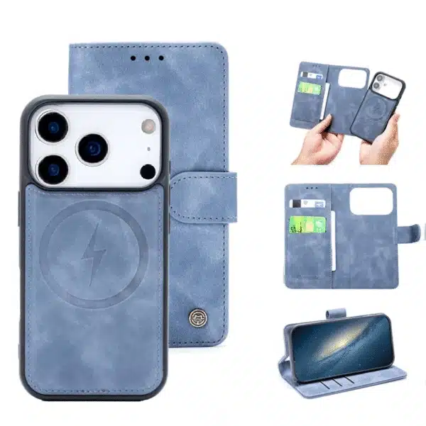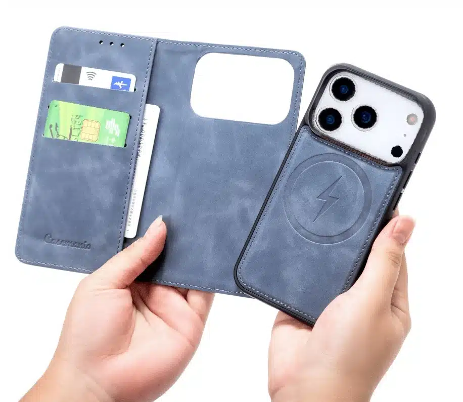 Het unieke 2-in-1 systeem combineert een afneembare, magnetische backcover met een luxe bookcase. Gebruik de stevige bookcase wanneer je volledige bescherming en pasjesruimte nodig hebt, of kies voor de slanke backcover voor een lichtere setup. Beide onderdelen klikken eenvoudig magnetisch in elkaar.