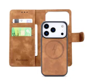 Het unieke 2-in-1 systeem combineert een afneembare, magnetische backcover met een luxe bookcase. Gebruik de stevige bookcase wanneer je volledige bescherming en pasjesruimte nodig hebt, of kies voor de slanke backcover voor een lichtere setup. Beide onderdelen klikken eenvoudig magnetisch in elkaar.