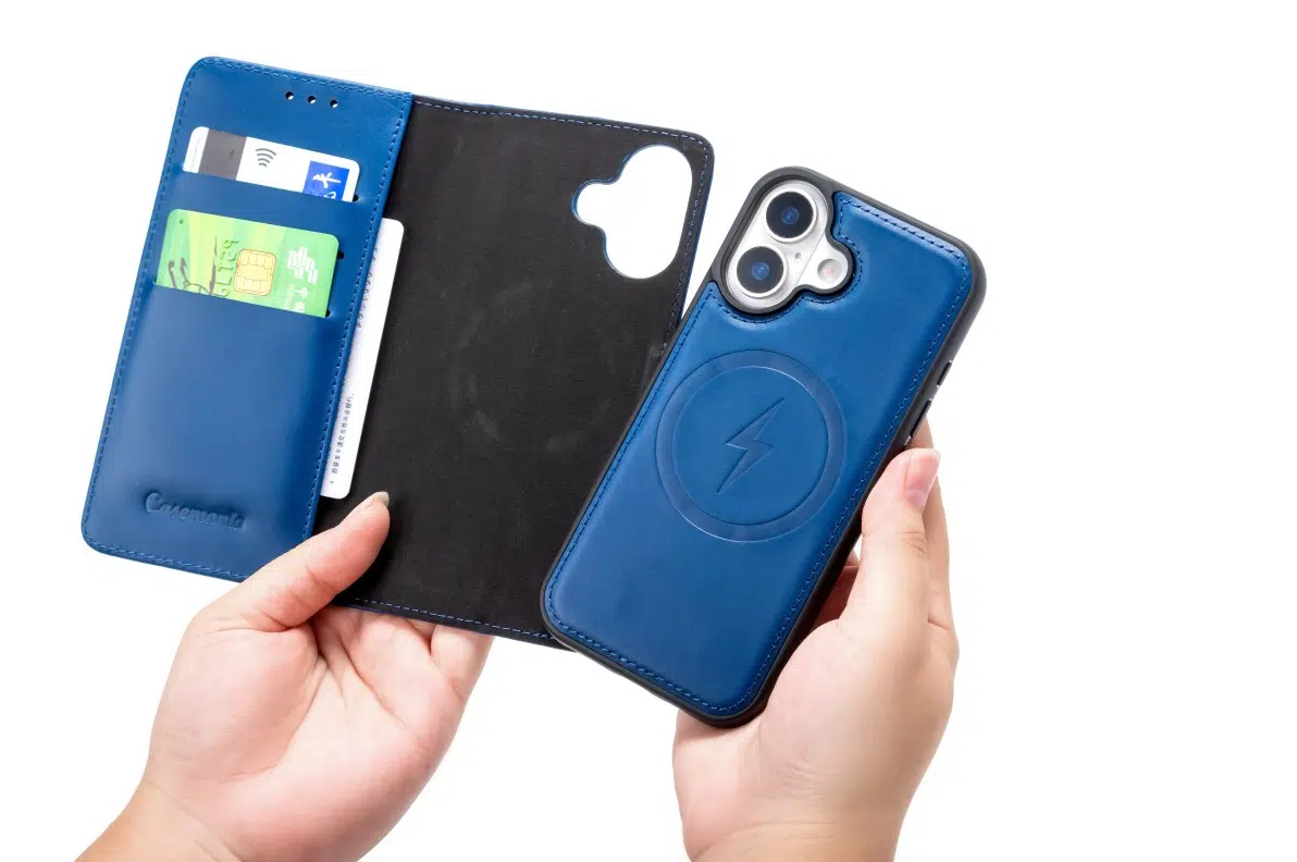 Casemania – Bookcase 2 in 1 Hoesje – iPhone 17 – MagSafe – Echt Leer – Blauw