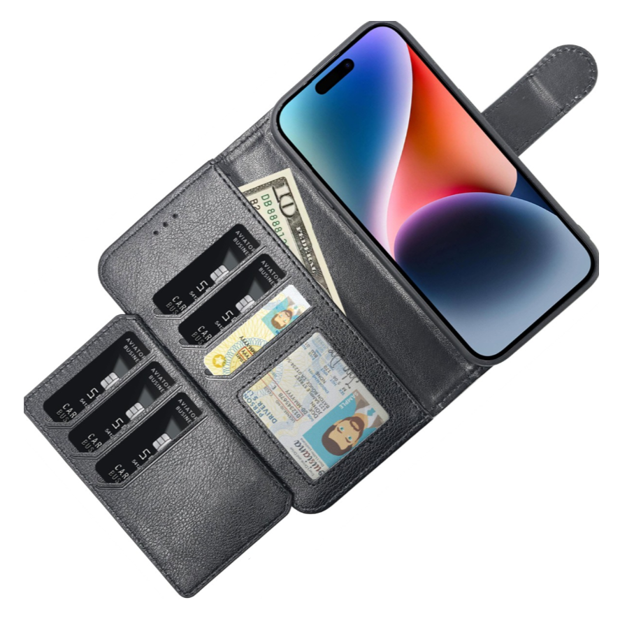 Casemania – Bookcase iPhone 16 Pro – 2 in 1 – 6 Pasjes – Zwart
