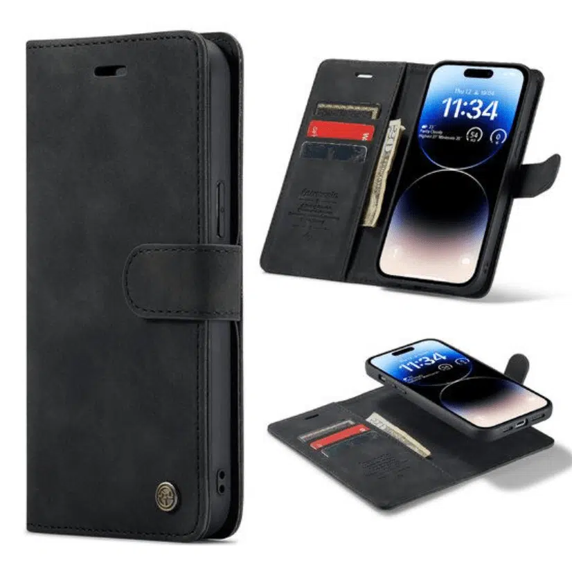 Casemania – Bookcase iPhone 15 – 2 in 1 – incl. Pasjeshouder – Zwart