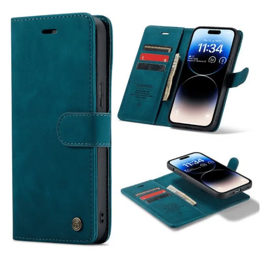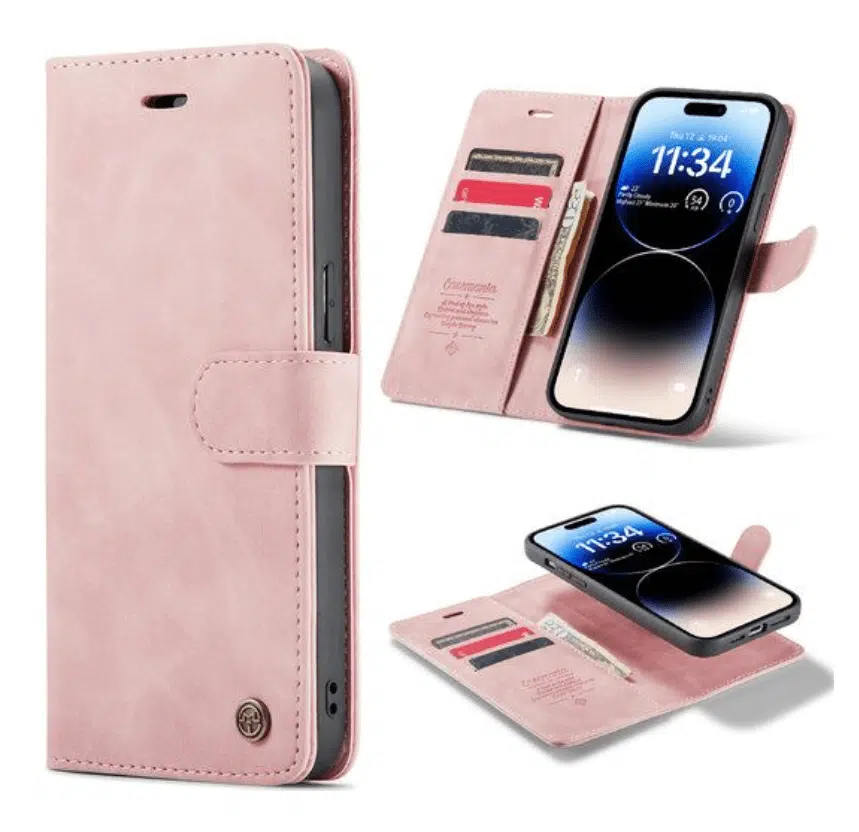 Casemania iPhone 15 Book cover hoesje. De iPhone 15 – Bookcase incl. Pasjeshouder is een hoesje van goede kwaliteit met een magnetische sluiting. Er zitten 3 pashouders in het hoesje samen met een vakje voor pasfoto’s en een extra flap waar eventueel briefgeld in bewaard kan worden. Doordat dit hoesje vervaardigd is uit goede kwaliteit stof heeft het een lange levensduur. Daarnaast ziet het hoesje er zeer modern en goed uit, wat het één van onze beste keuzes maakt. Deze iPhone 15 wallet book case is een zeer stevige hoes gemaakt van kunstleer, wat zeer aangenaam in de hand ligt. Daarnaast beschermt de hoes je telefoon goed tegen krassen en stoten. Het kunstlederen materiaal is verwerkt in de hele hoes. Doordat dit kunstlederen materiaal erg zacht is, wordt het beeldscherm van je telefoon ook goed beschermd en voorkom je krassen in het display. Met de hoes bescherm je dus je volledige telefoon. De installatie van de hoes is zeer eenvoudig. Door de toestel specifieke pasvorm klik je de smartphone eenvoudig in de hoes. De knoppen, aansluiten en camera blijven volledig vrij
