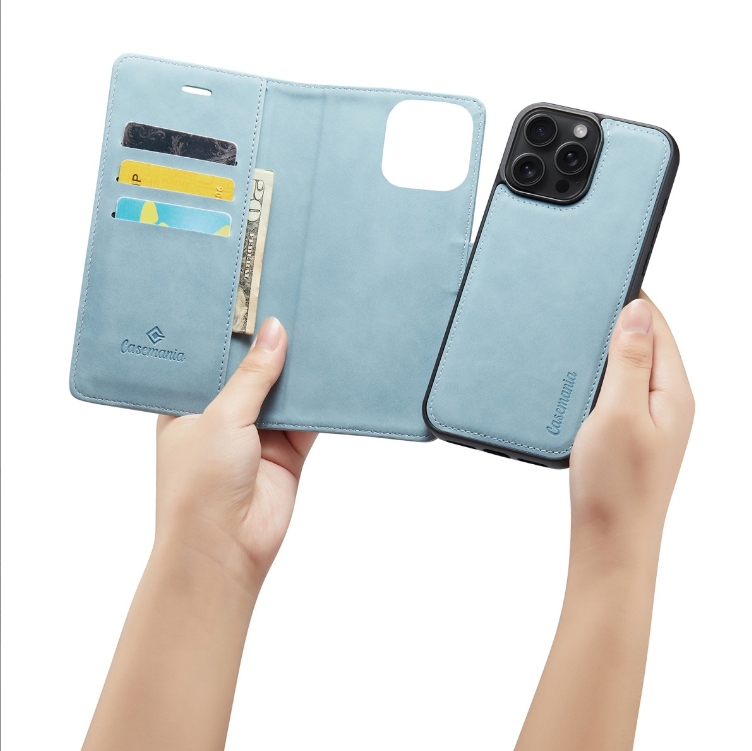 Casemania – Bookcase iPhone 16 Pro – 2 in 1 – Licht Blauw