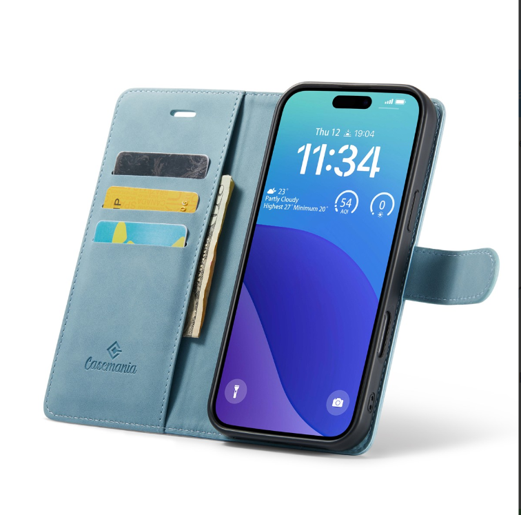 Casemania iPhone 16 Pro Book cover hoesje. De iPhone 16 Pro – Bookcase incl. Pasjeshouder is een hoesje van goede kwaliteit met een magnetische sluiting. Er zitten 3 pashouders in het hoesje samen met een vakje voor pasfoto’s en een extra flap waar eventueel briefgeld in bewaard kan worden. Doordat dit hoesje vervaardigd is uit goede kwaliteit stof heeft het een lange levensduur. Daarnaast ziet het hoesje er zeer modern en goed uit, wat het één van onze beste keuzes maakt. Deze iPhone 16 Pro wallet book case is een zeer stevige hoes gemaakt van kunstleer, wat zeer aangenaam in de hand ligt. Daarnaast beschermt de hoes je telefoon goed tegen krassen en stoten. Het kunstlederen materiaal is verwerkt in de hele hoes. Doordat dit kunstlederen materiaal erg zacht is, wordt het beeldscherm van je telefoon ook goed beschermd en voorkom je krassen in het display. Met de hoes bescherm je dus je volledige telefoon. De installatie van de hoes is zeer eenvoudig. Door de toestel specifieke pasvorm klik je de smartphone eenvoudig in de hoes. De knoppen, aansluiten en camera blijven volledig vrij.