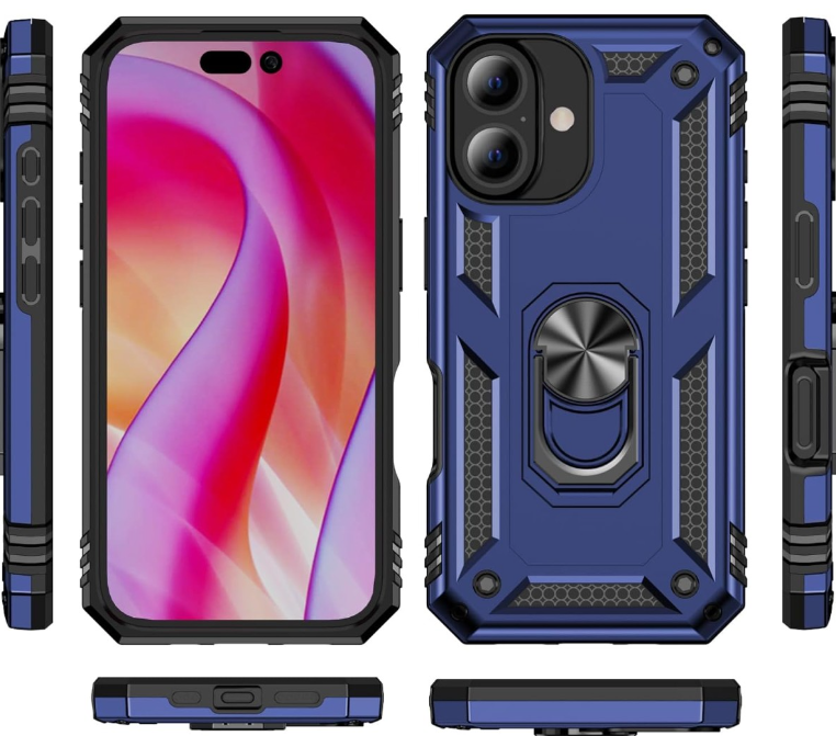 Cityhoesje – Backcover iPhone 16 – Armor Kickstand – Ring – Blauw