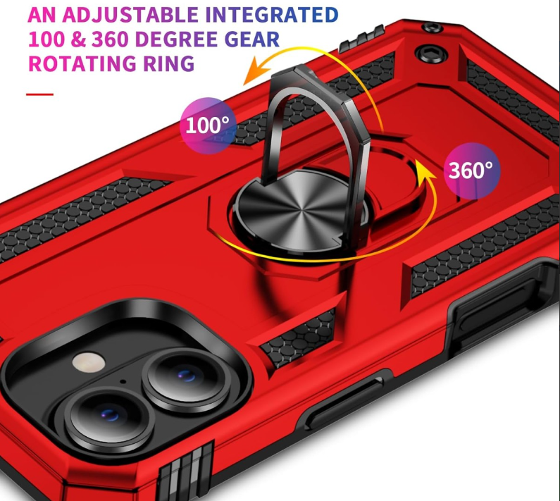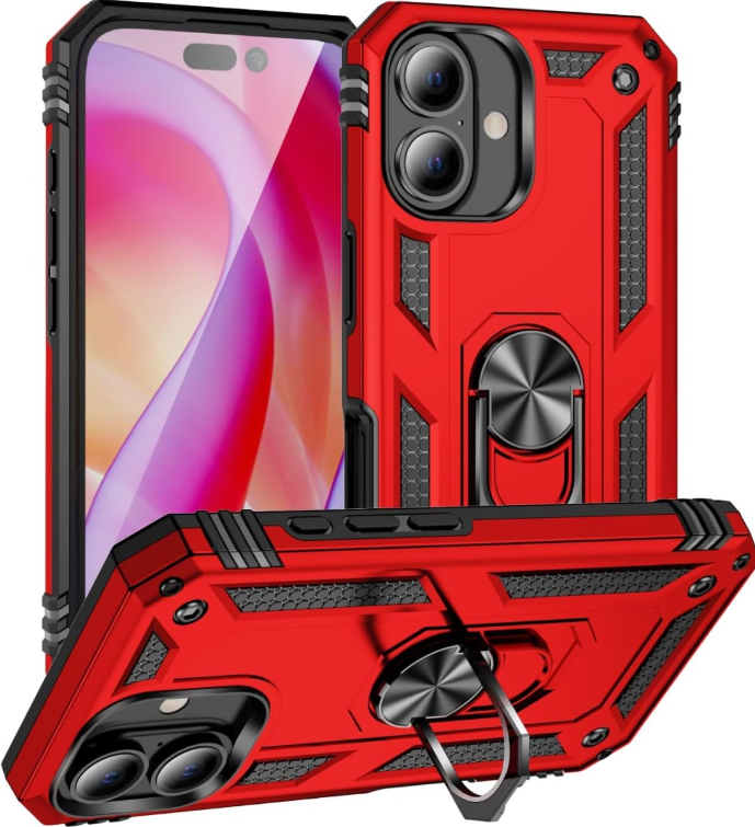 Cityhoesje – Backcover iPhone 16 – Armor Kickstand – Ring – Rood