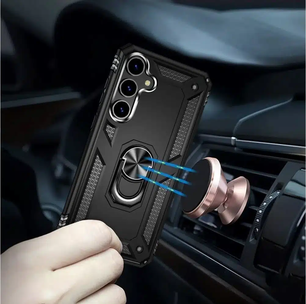 Cityhoesje – Backcover Armor – Ring- Geschikt voor – Samsung S24 FE – Zwart