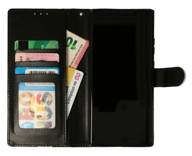 - Portemonnee hoesje: Een hoesje met extra vakjes om creditcards, identiteitskaarten en geld op te bergen, waardoor je je portemonnee thuis kunt laten.