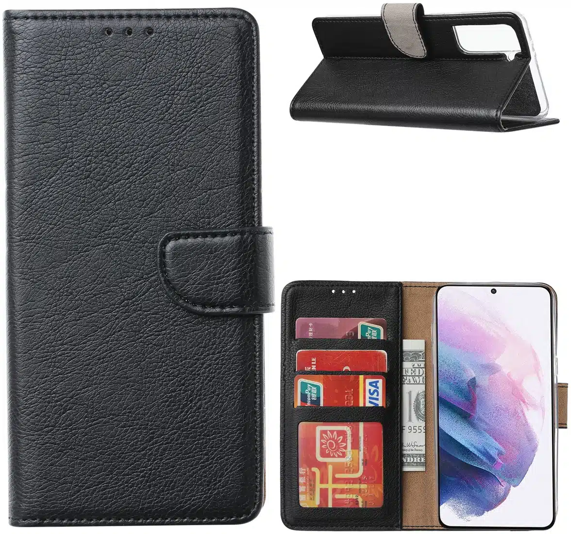 - Portemonnee hoesje: Een hoesje met extra vakjes om creditcards, identiteitskaarten en geld op te bergen, waardoor je je portemonnee thuis kunt laten.