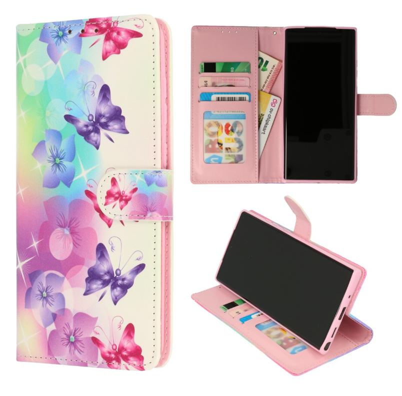 Cityhoesje – Bookcase – Geschikt voor – Samsung S24 Ultra – Print Bloemen en Vlinders