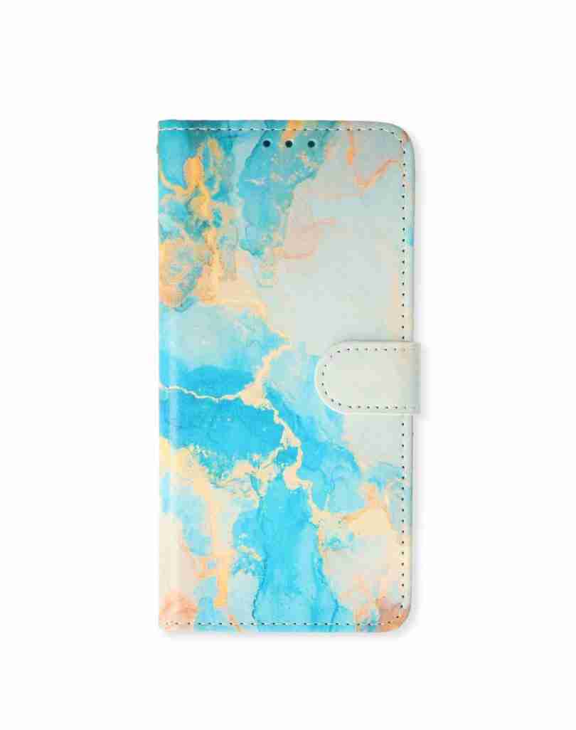 Cityhoesje – Bookcase – Geschikt voor – Samsung S24 Ultra – Print Marmer Goud Blauw