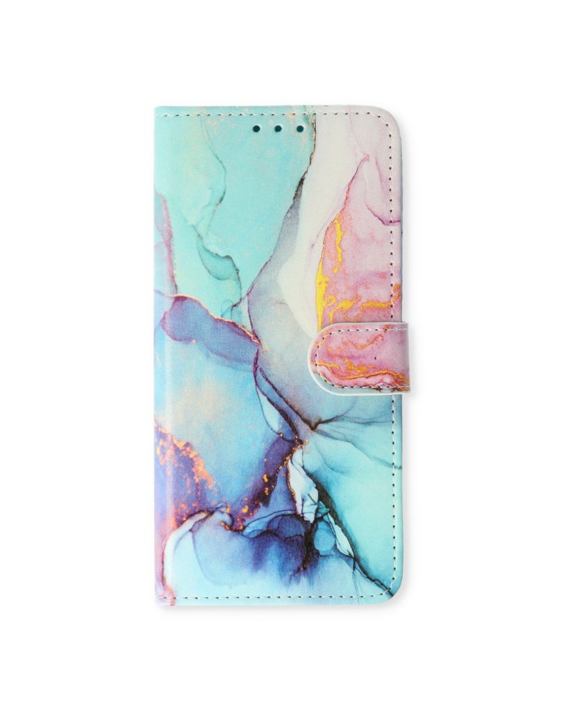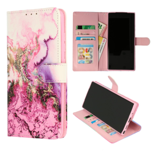 Cityhoesje.nl – Bookcase – Geschikt voor – Samsung S24 Ultra – Print Marmer Roze Blauw