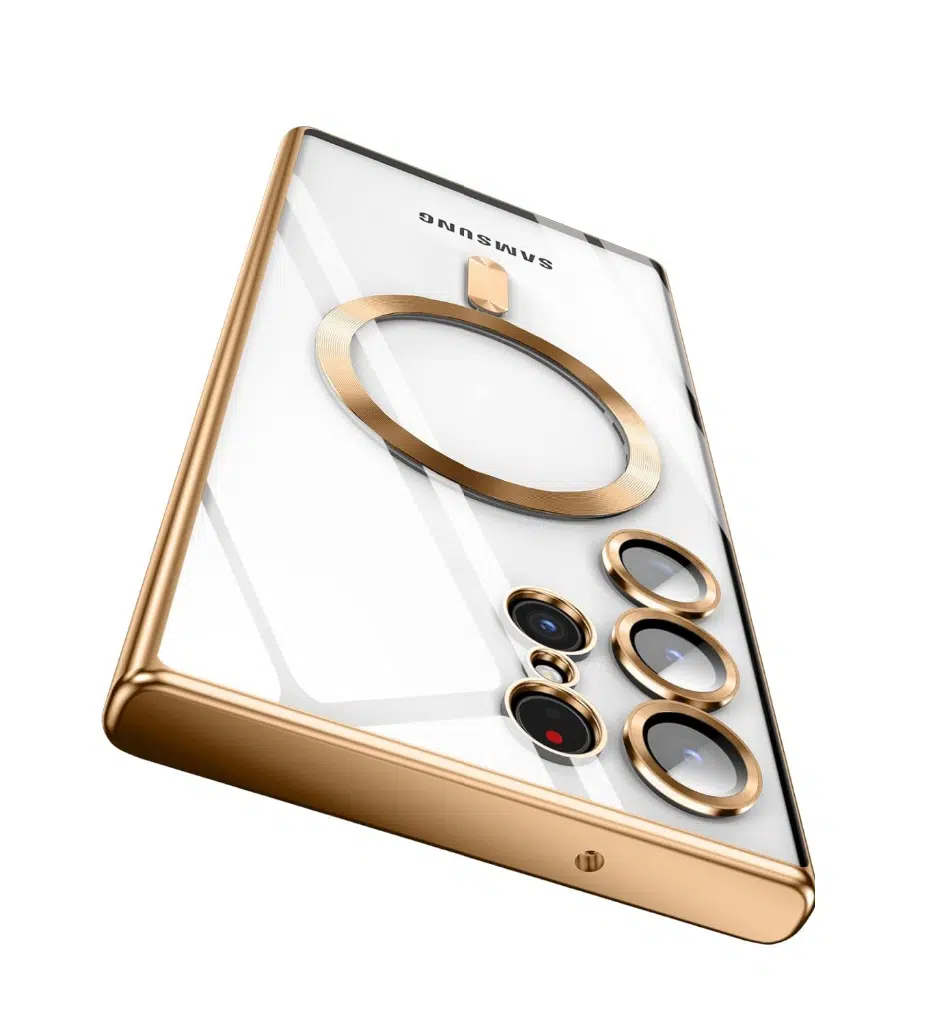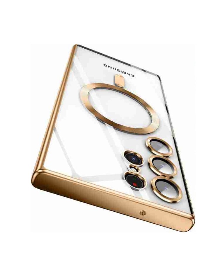 Cityhoesje-Transparant Goud- Magsafe – Lens Protection – Backcover- Samsung S23 Ultra