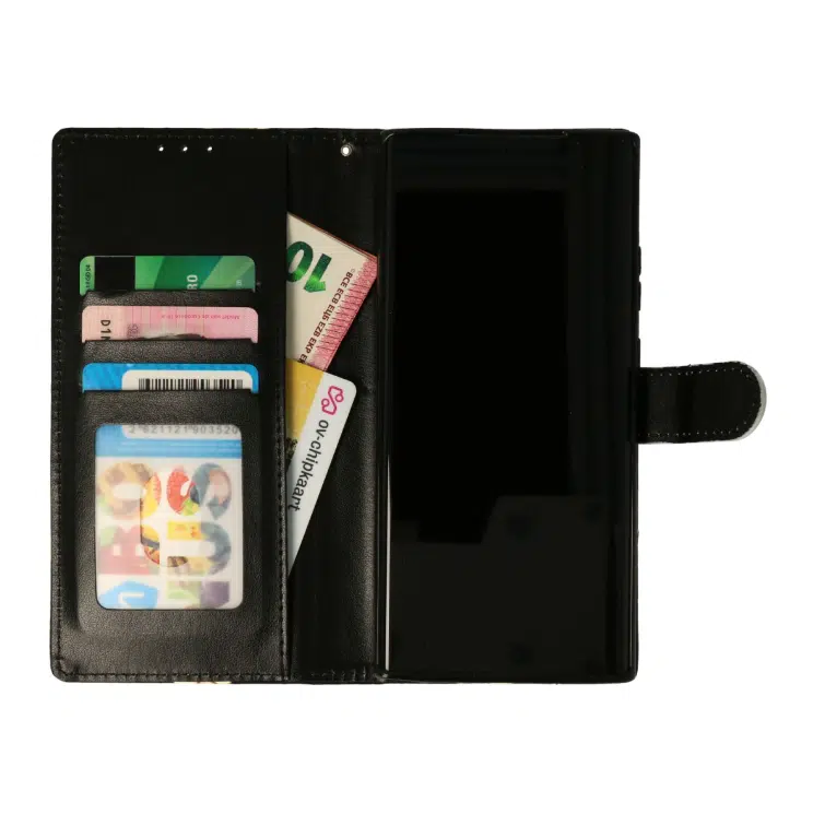 - Portemonnee hoesje: Een hoesje met extra vakjes om creditcards, identiteitskaarten en geld op te bergen, waardoor je je portemonnee thuis kunt laten.