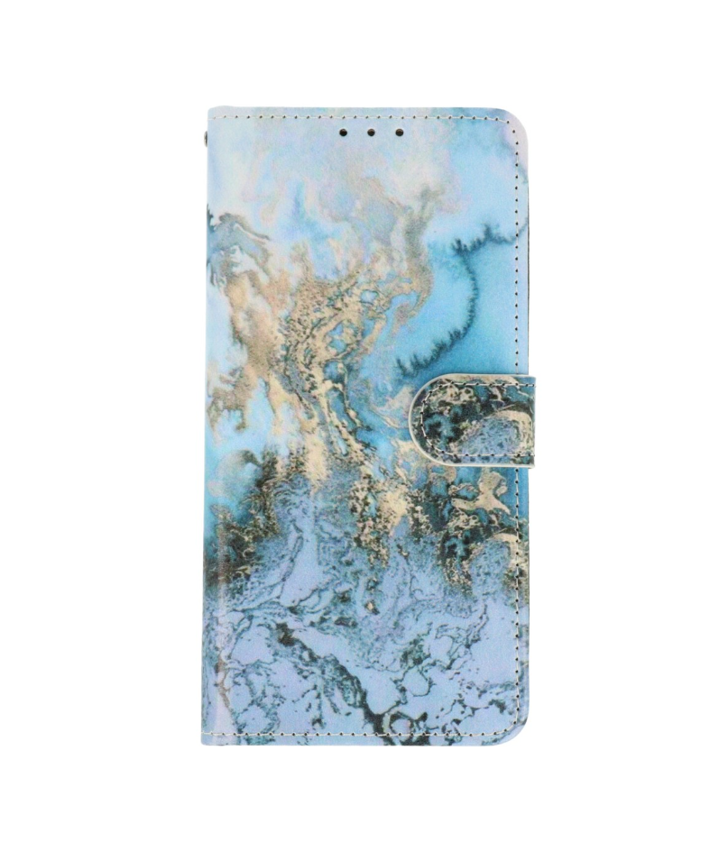 Cityhoesje – Bookcase – Geschikt voor Samsung S24/S25 – Marmer Blauw