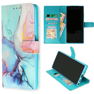 Cityhoesje – Geschikt voor – Samsung-A15 – Bookcase Print – Marmer Blauw