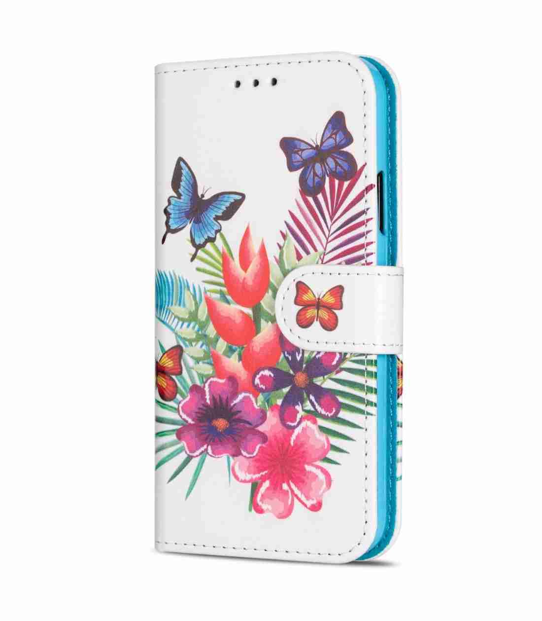 Cityhoesje-iPhone12 Pro Max-Bookcase Incl. Pasjeshouder-Bloemen met Vlinder