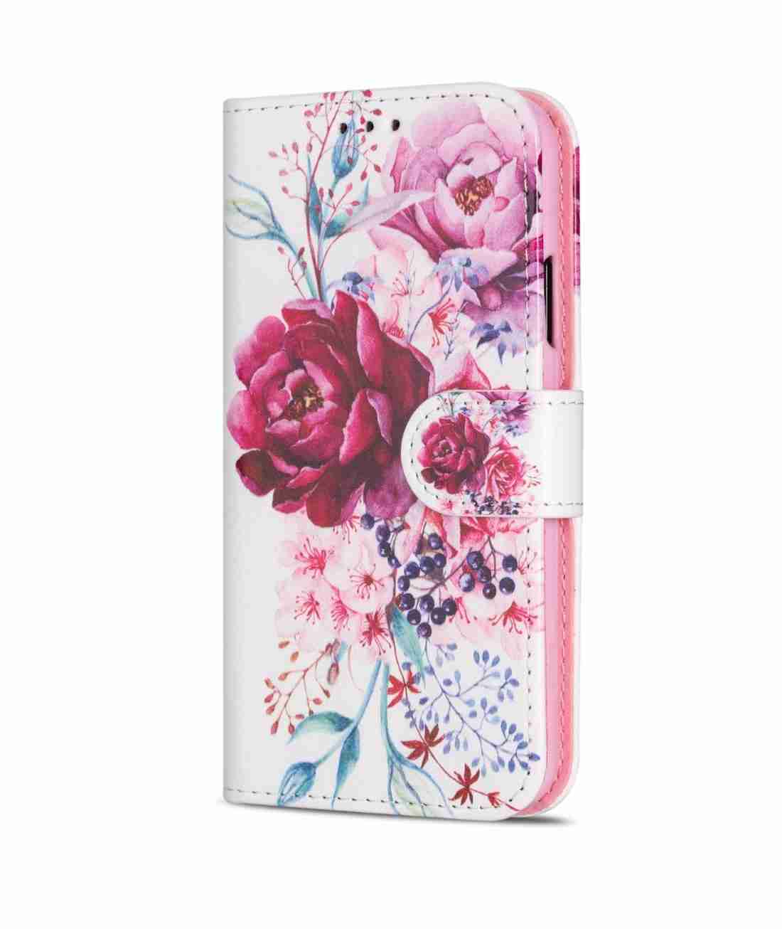 Cityhoesje-iPhone 12 Pro Max-Bookcase Incl. Pasjeshouder-Pioenrozen