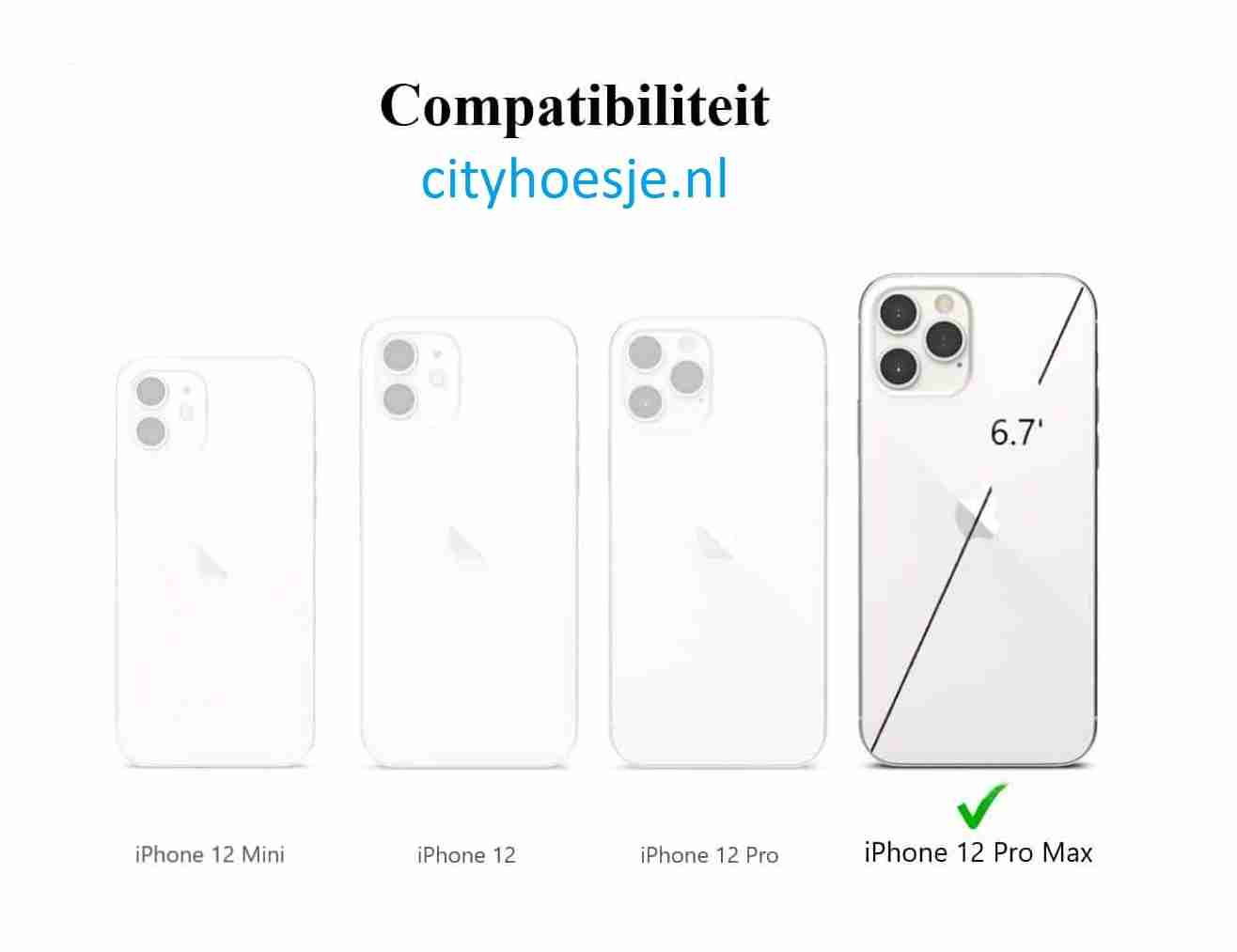 Cityhoesje.nl Lederlook prachtig ontworpen boekmodel hoesje special ontworpen voor iPhone 12 Pro Max. Dit van hoog kwaliteit hoesje met prachtige opdruk op de achterkant heeft een extra zachte achterkant waardoor het lekker en comfortabel in de hand voelt. Aan de binnenkant biedt het hoesje ruimte aan pasjes en extra opbergruimte voor briefgeld en documenten. De strakke afwerking van het hoesje zorgt dat alle functietoetsen en aansluitingen toegankelijk blijven. De sparringen zorgen ervoor dat alle knoppen, toetsen, camera’s bereikbaar zijn. Dit hoesje is een uitstekende bescherming tegen kras, val en stoot. De krachtige magneetsluiting zorgt ervoor dat het hoesje dicht blijft en verkleint de kans op valschade. Dit hoesje is tevens voorzien van een stand functie om met gemakt handsfree video’s en filmpjes te bekijken.
