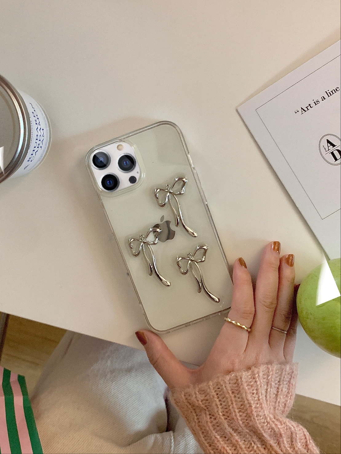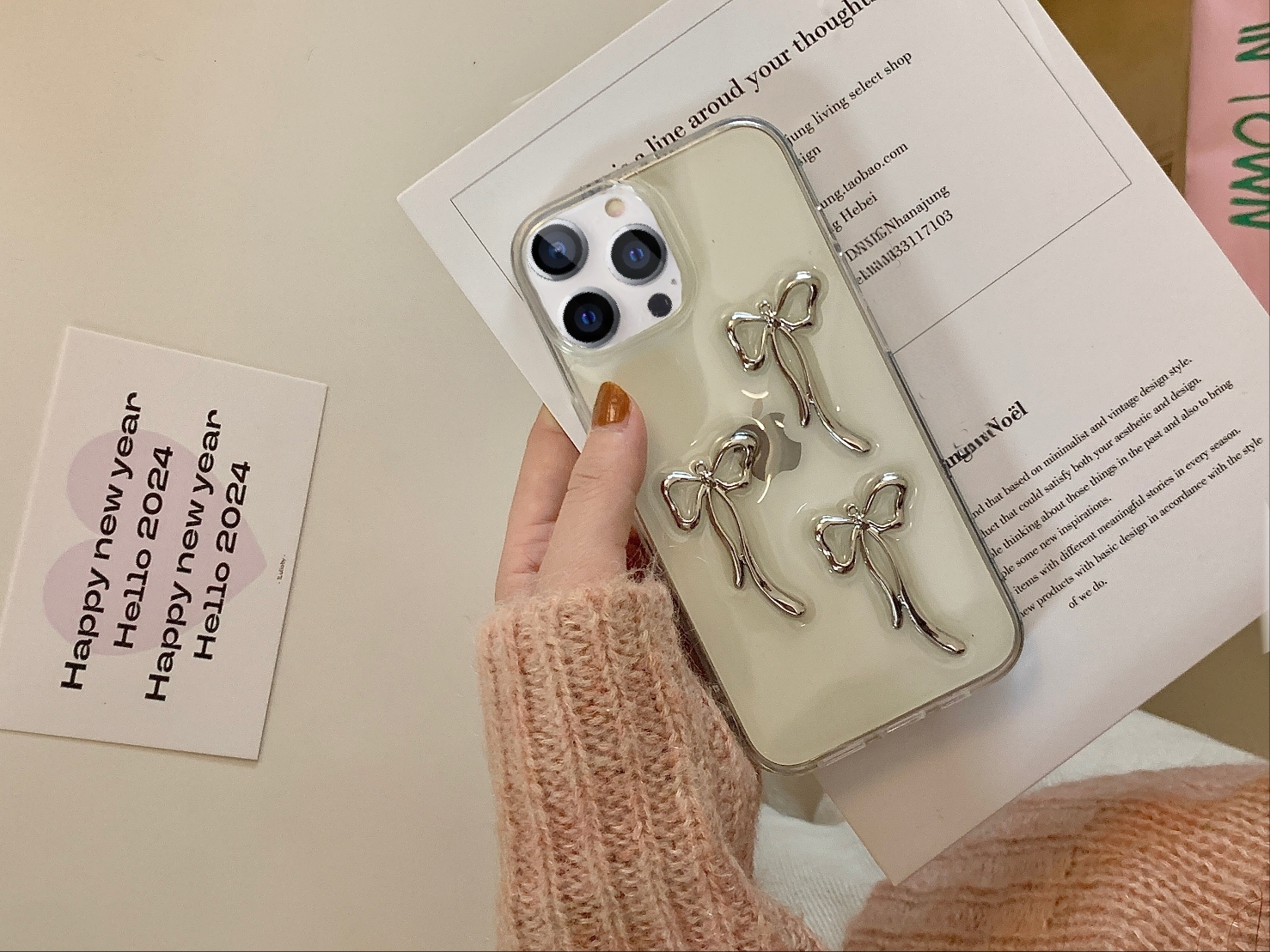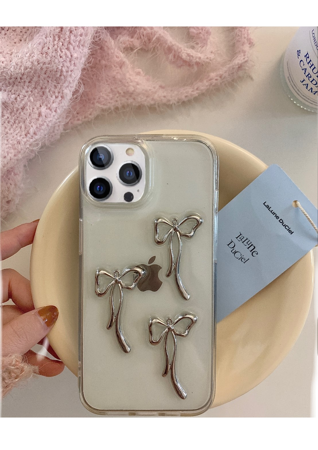 Cityhoesje – Backcover iPhone 15 Pro Max – Transparant – Strikjes Grijs