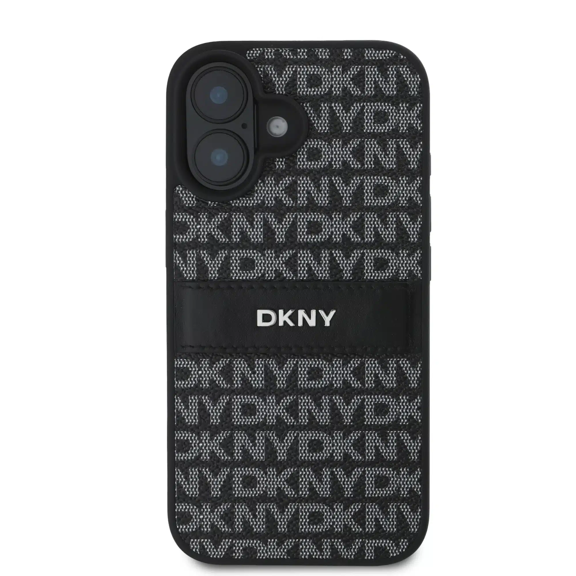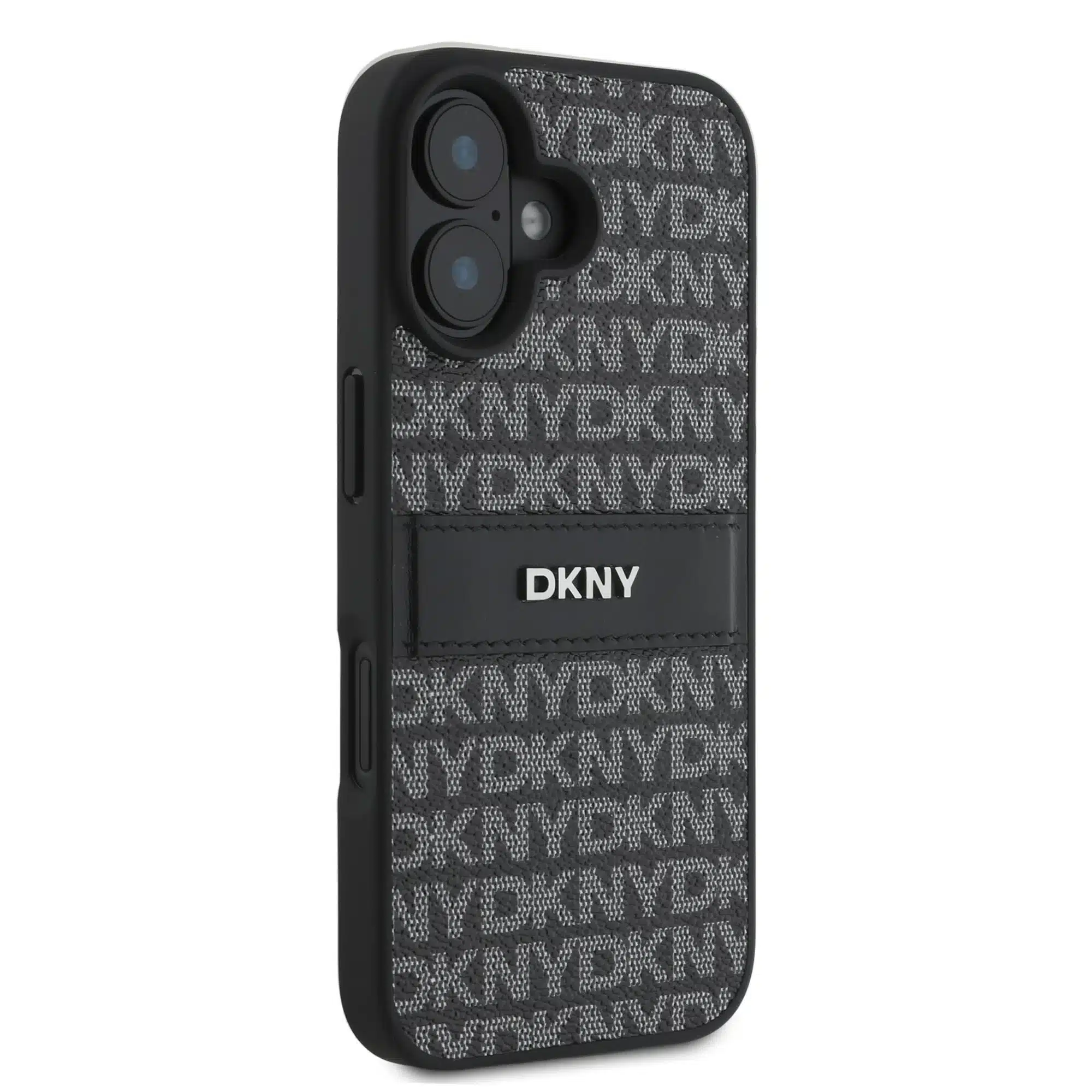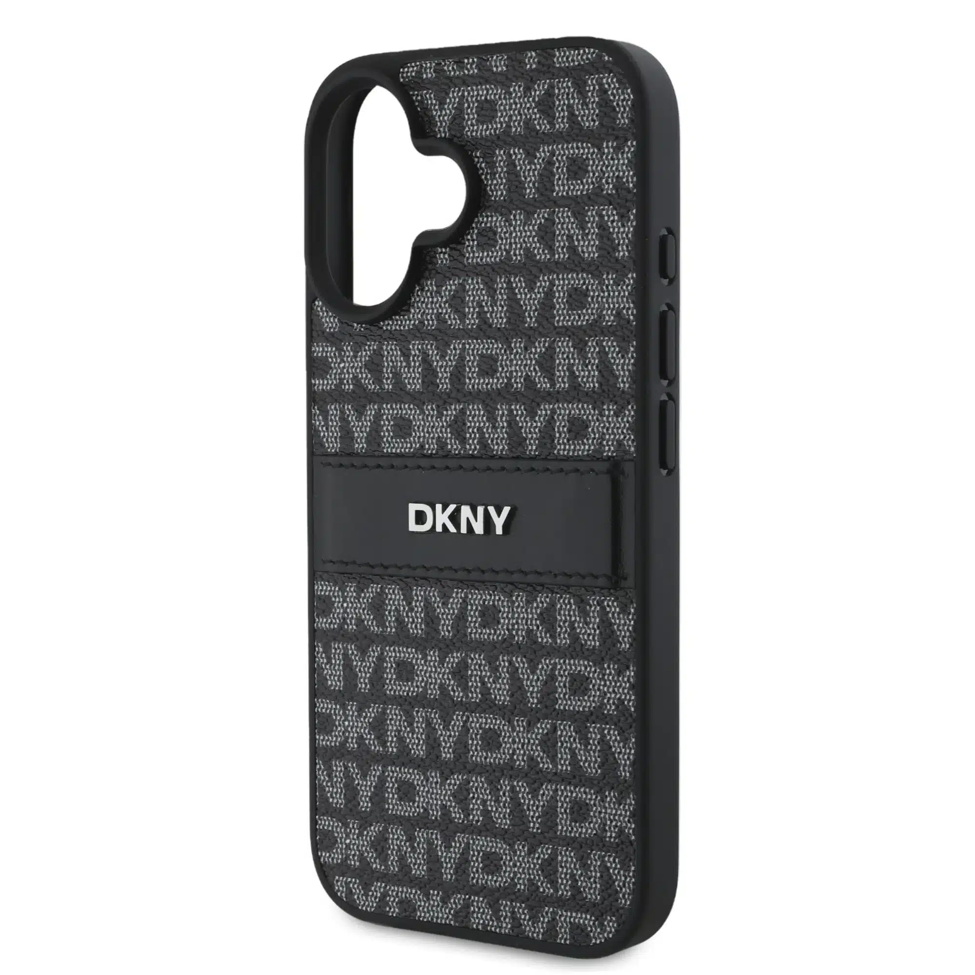 DKNY – Backcover iPhone 16 – PU Leather Repeat Pattern Tonal Stripe – Zwart