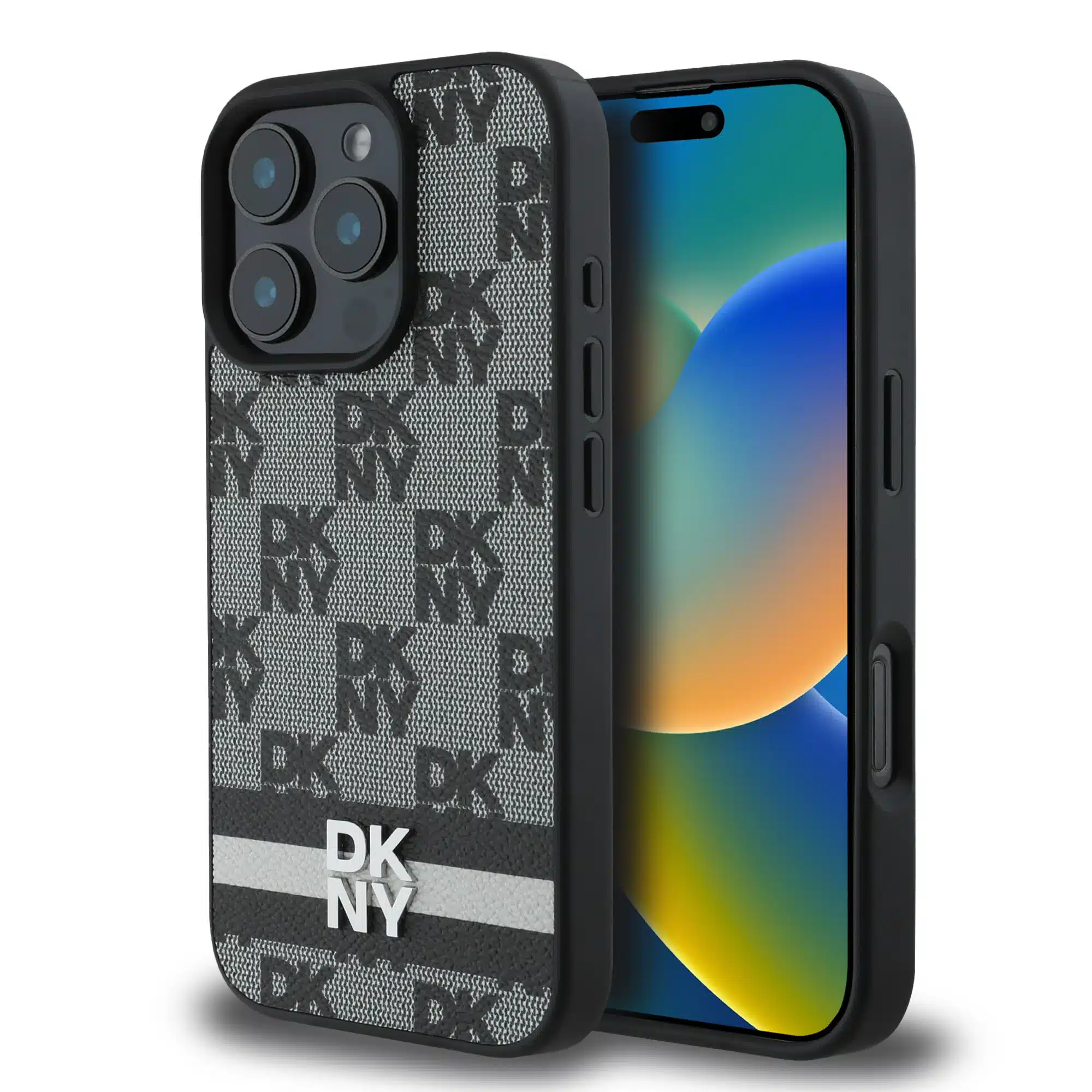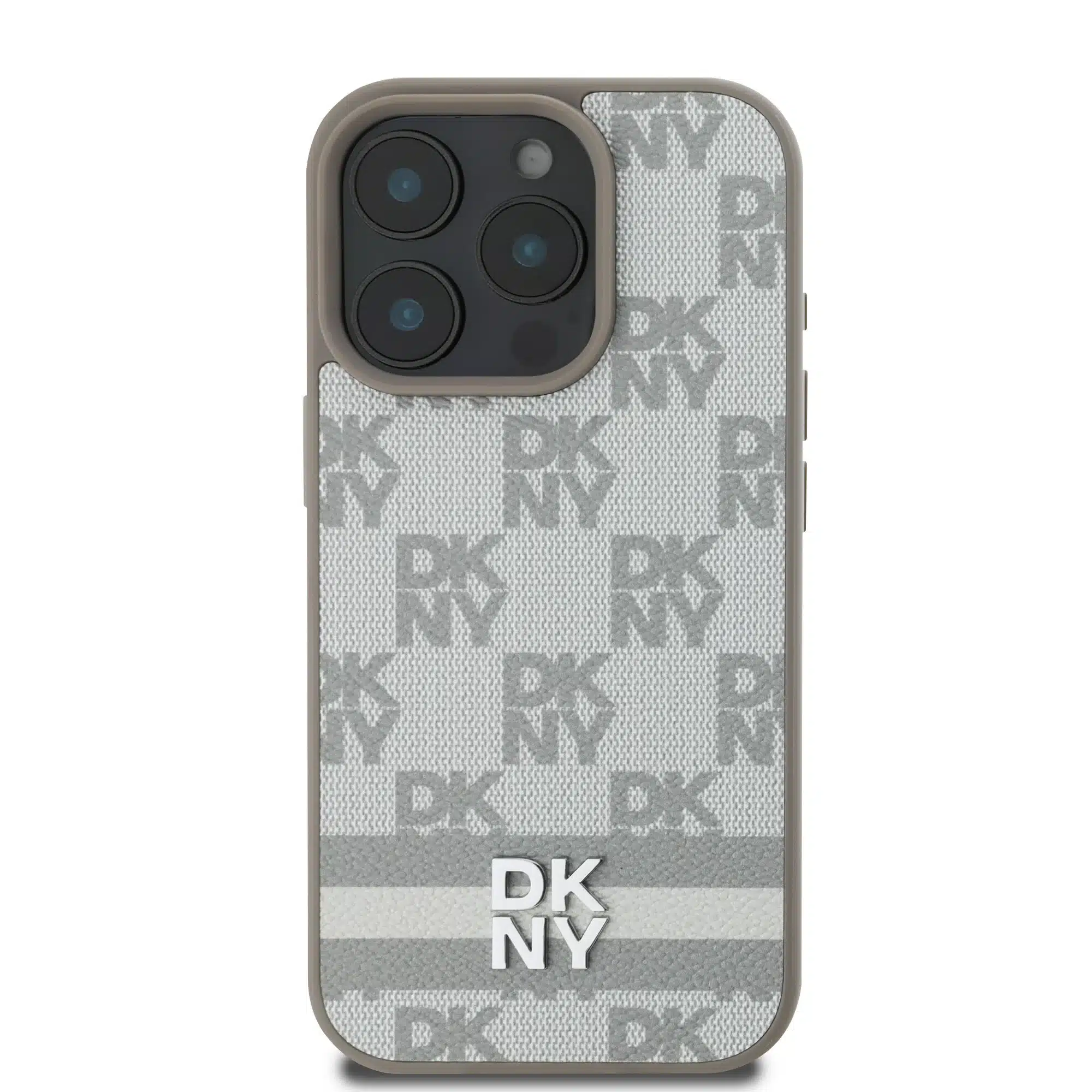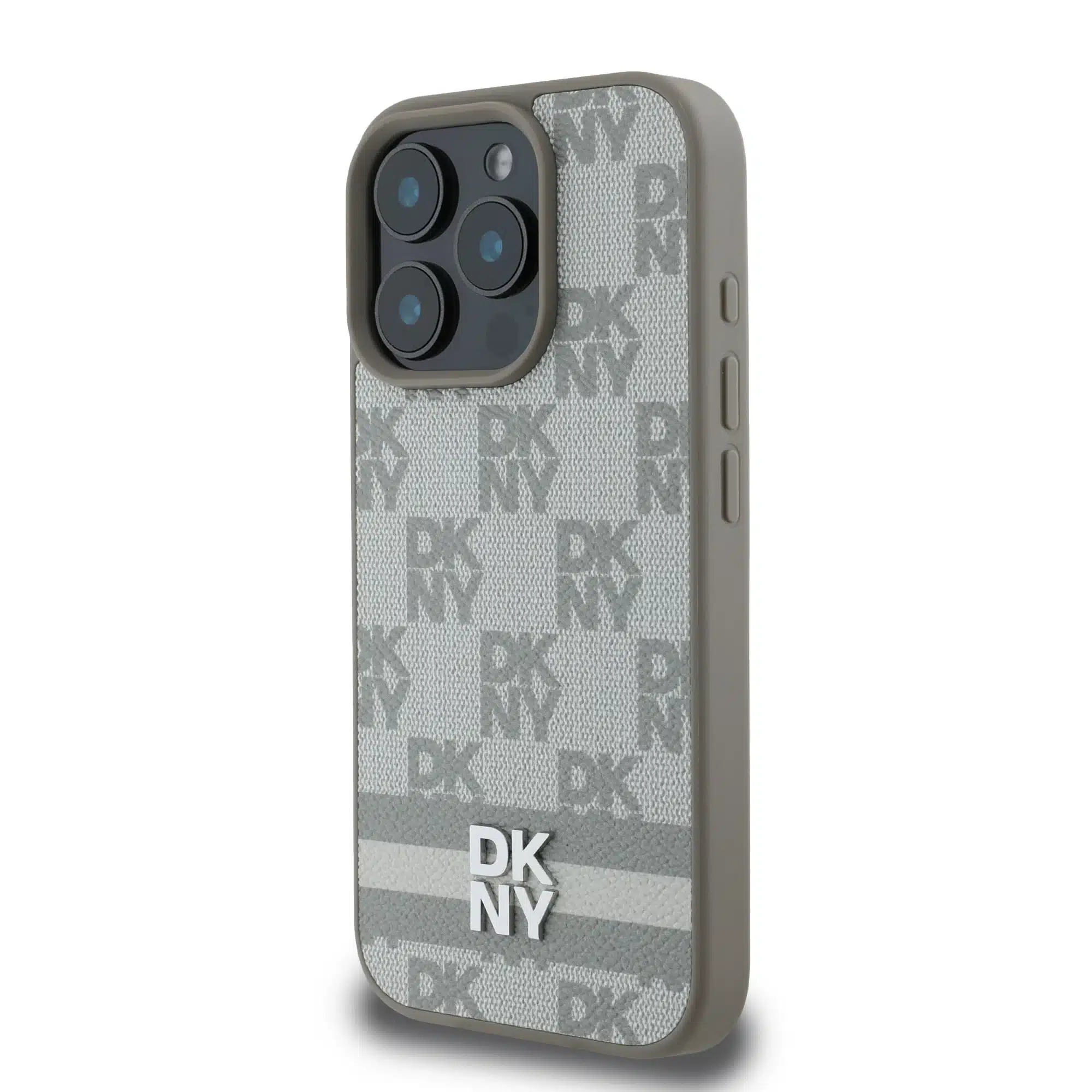 DKNY – Backcover iPhone 16 Pro – Checkered Pattern and Stripe – Beige