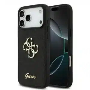 Guess – Backcover – hoesje – 4G – Big Metal Logo – Gold Edge -iPhone 17 Pro – Zwart