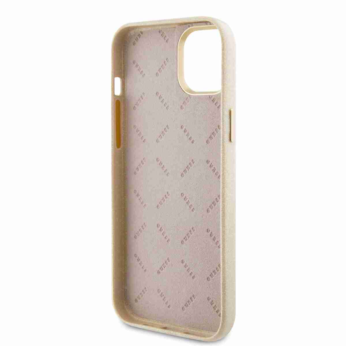 Guess – Backcover iPhone 14 Plus-15 Plus – Glitter Glossy Script – Goud