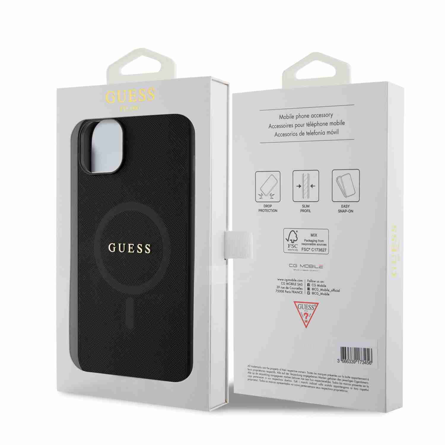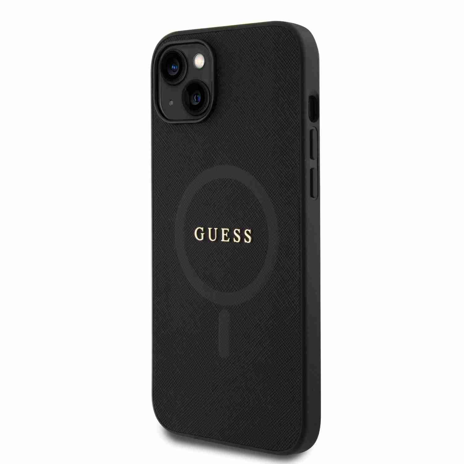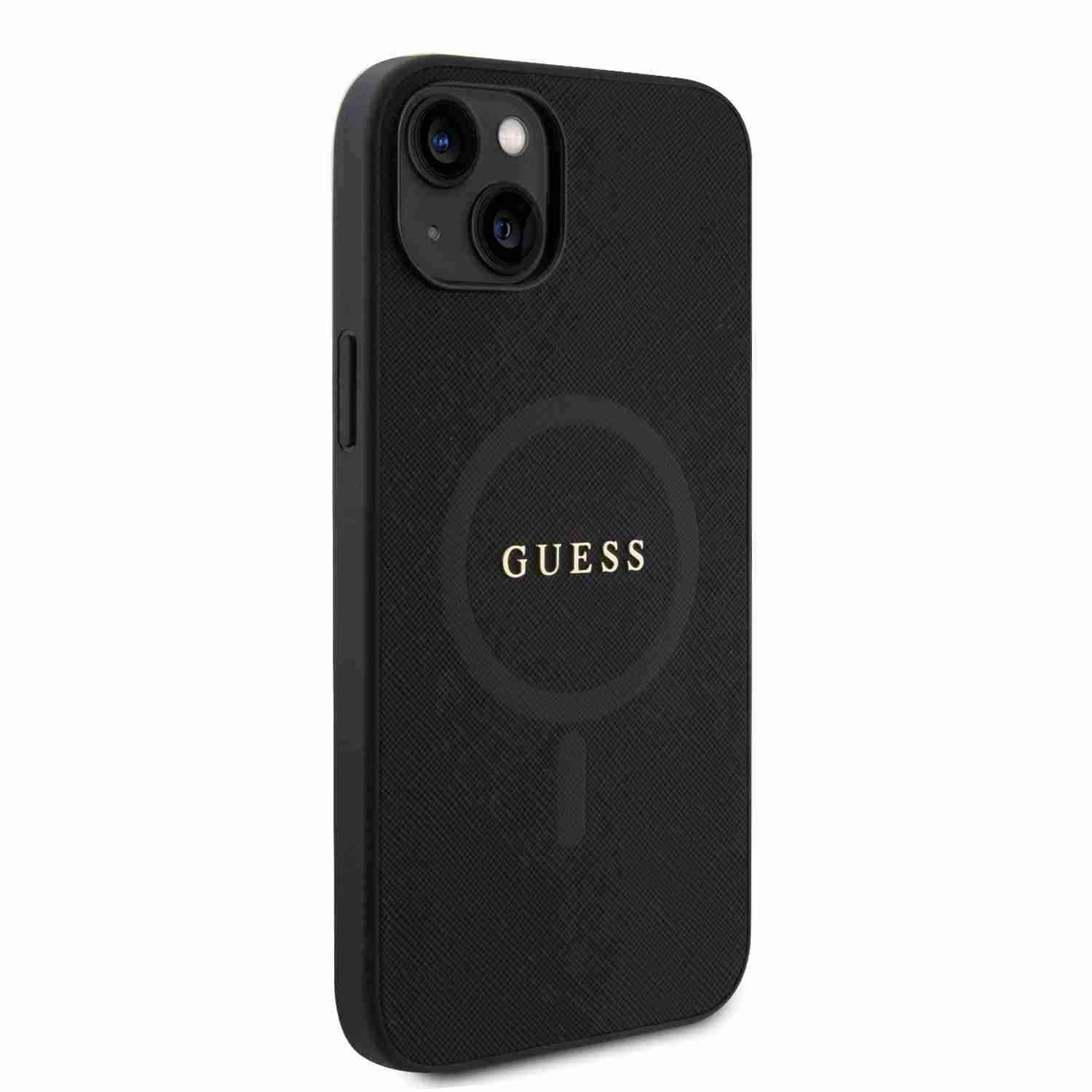 Guess – Backcover iPhone 14 Plus-15 Plus – Saffiano – Magsafe – Zwart
