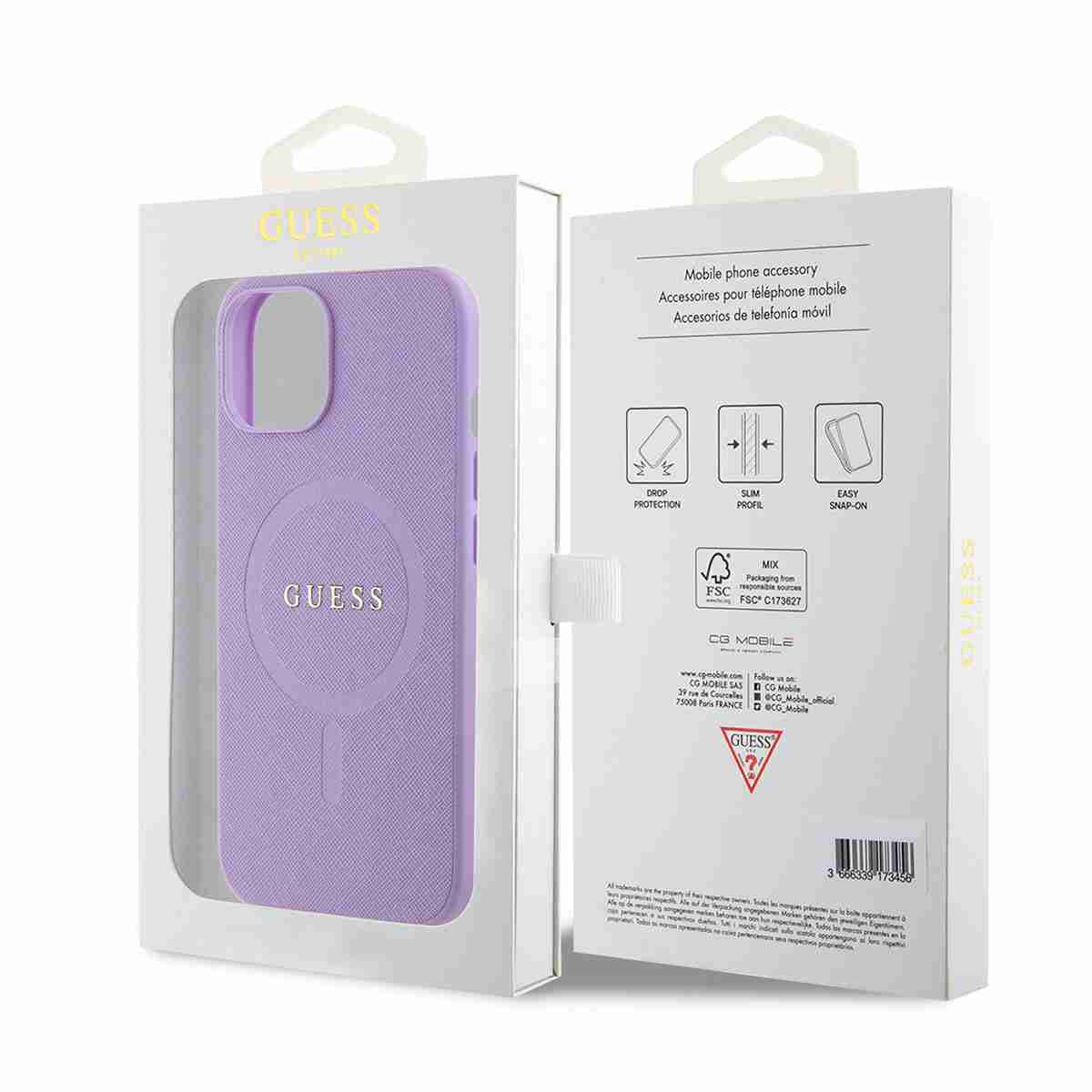 Guess – Backcover iPhone 14 Plus-15 Plus – Saffiano – Magsafe – Paars