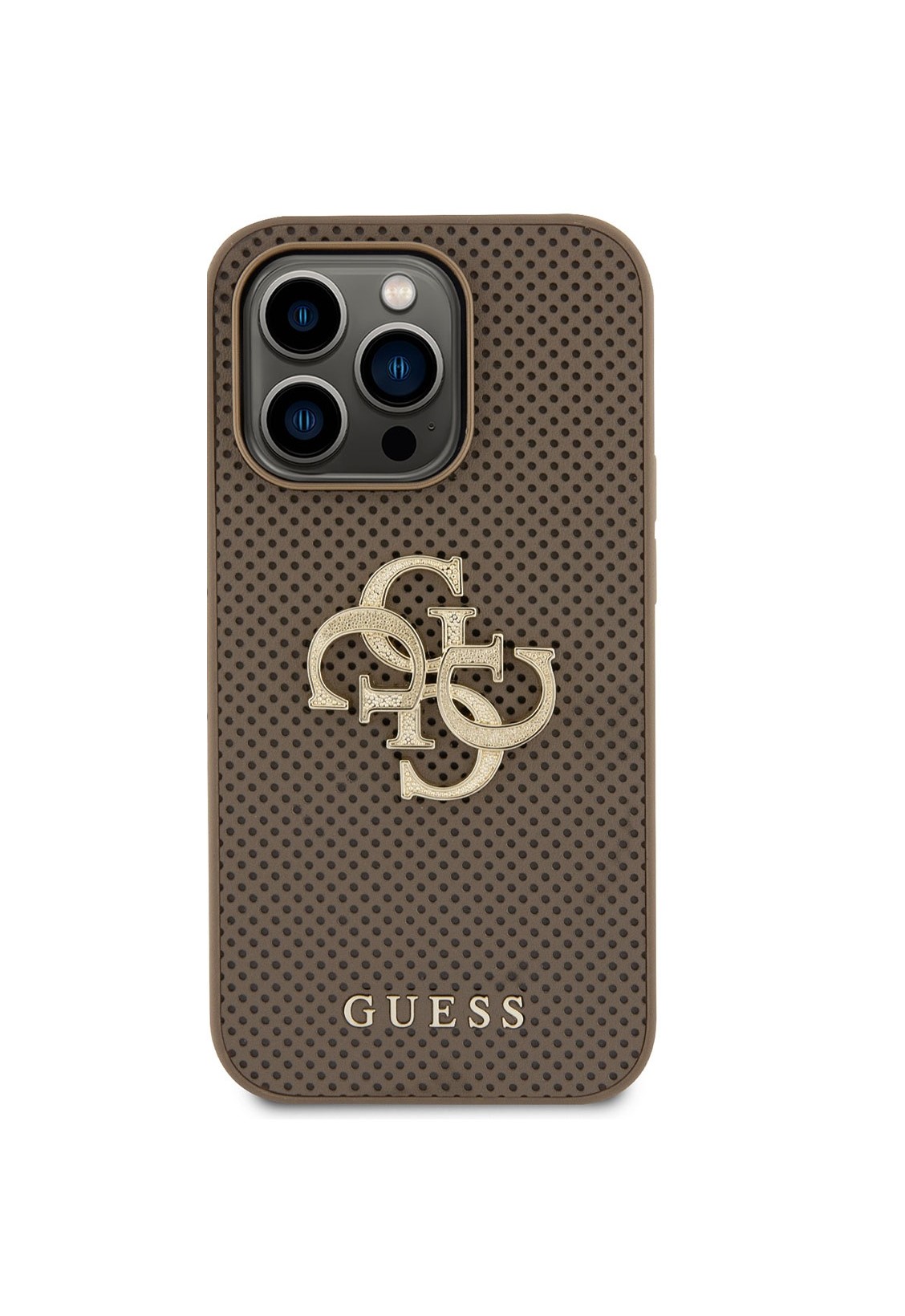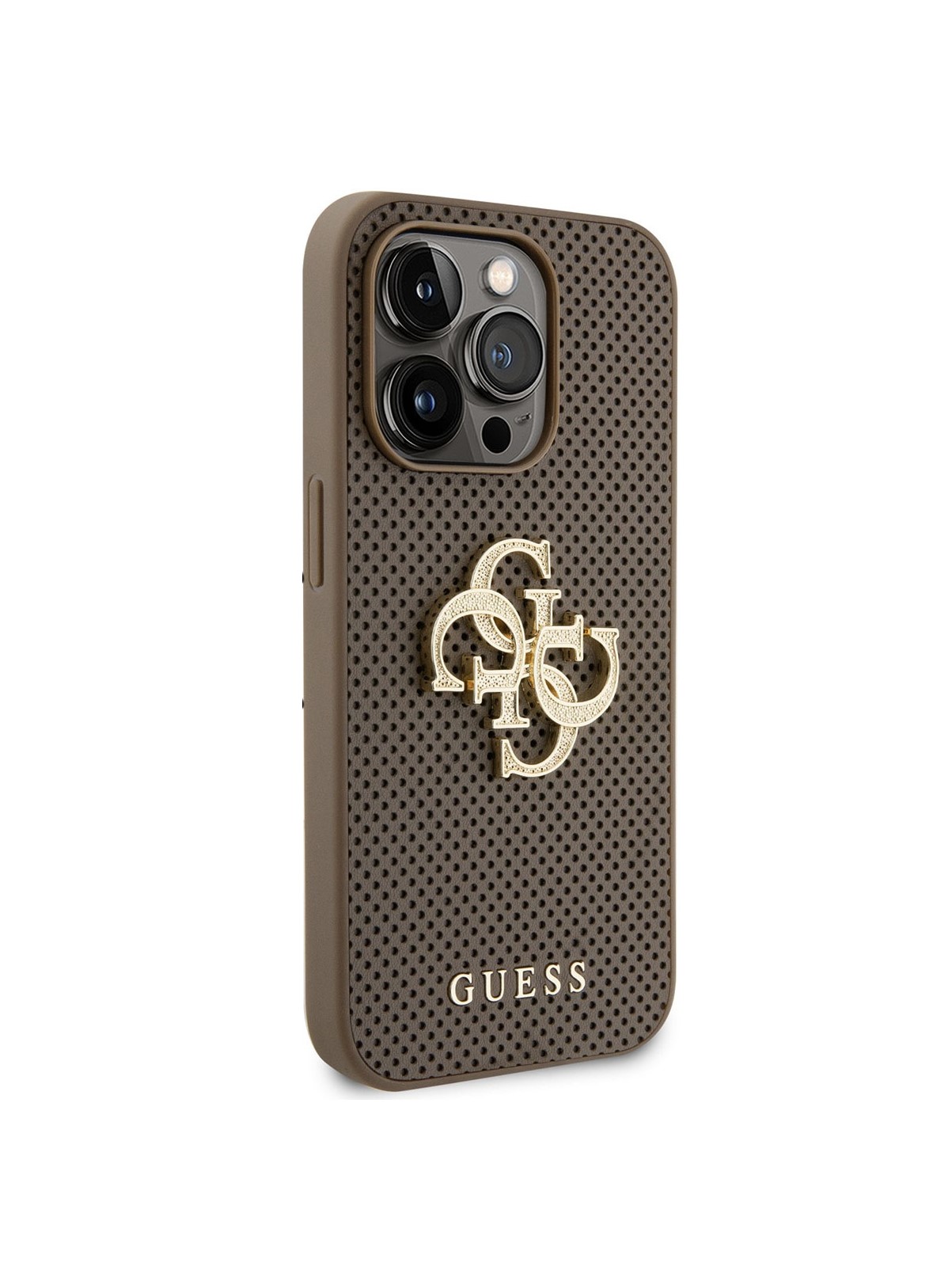 Guess – Backcover iPhone 15 Pro Max – Perforated 4G – glitter – Bruin