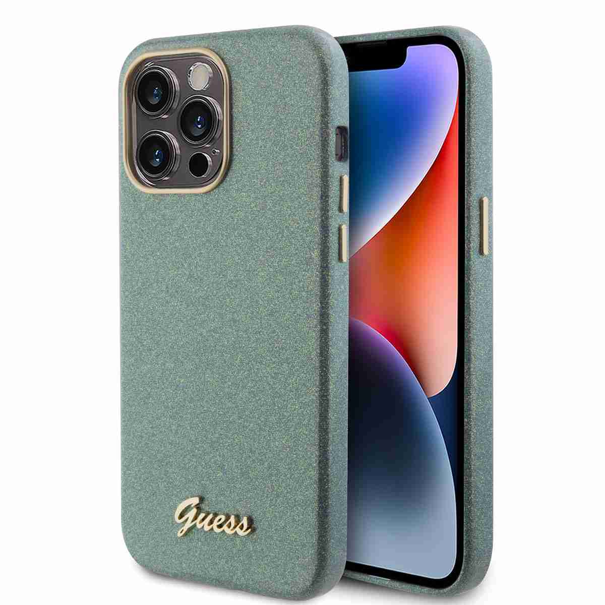 Guess – Backcover iPhone 15 Pro Max – Glitter Glossy Script – Paars