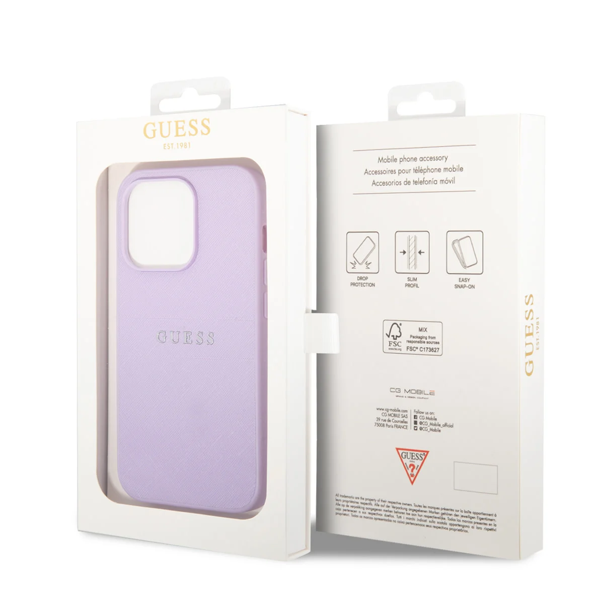 Guess – Backcover iPhone 15 Pro Max – Saffiano – Paars