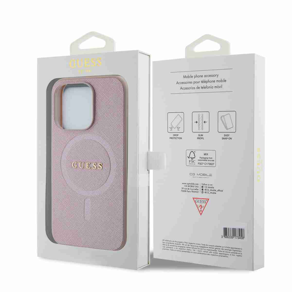 Guess – Backcover iPhone 15 Pro – Magsafe Compatible – Saffiano – Roze