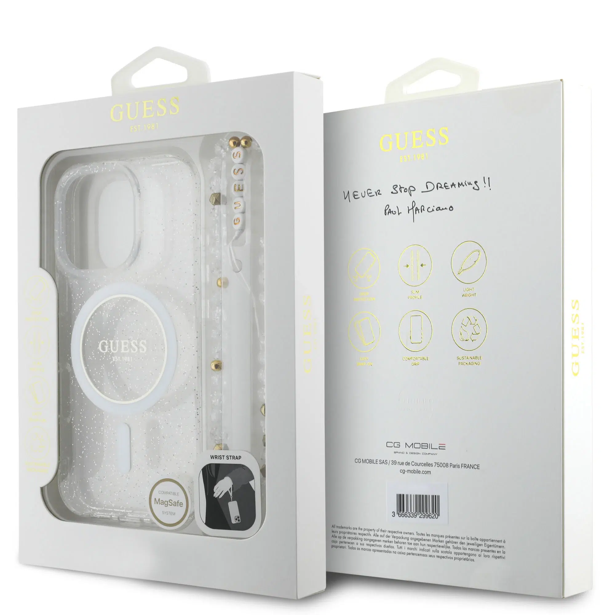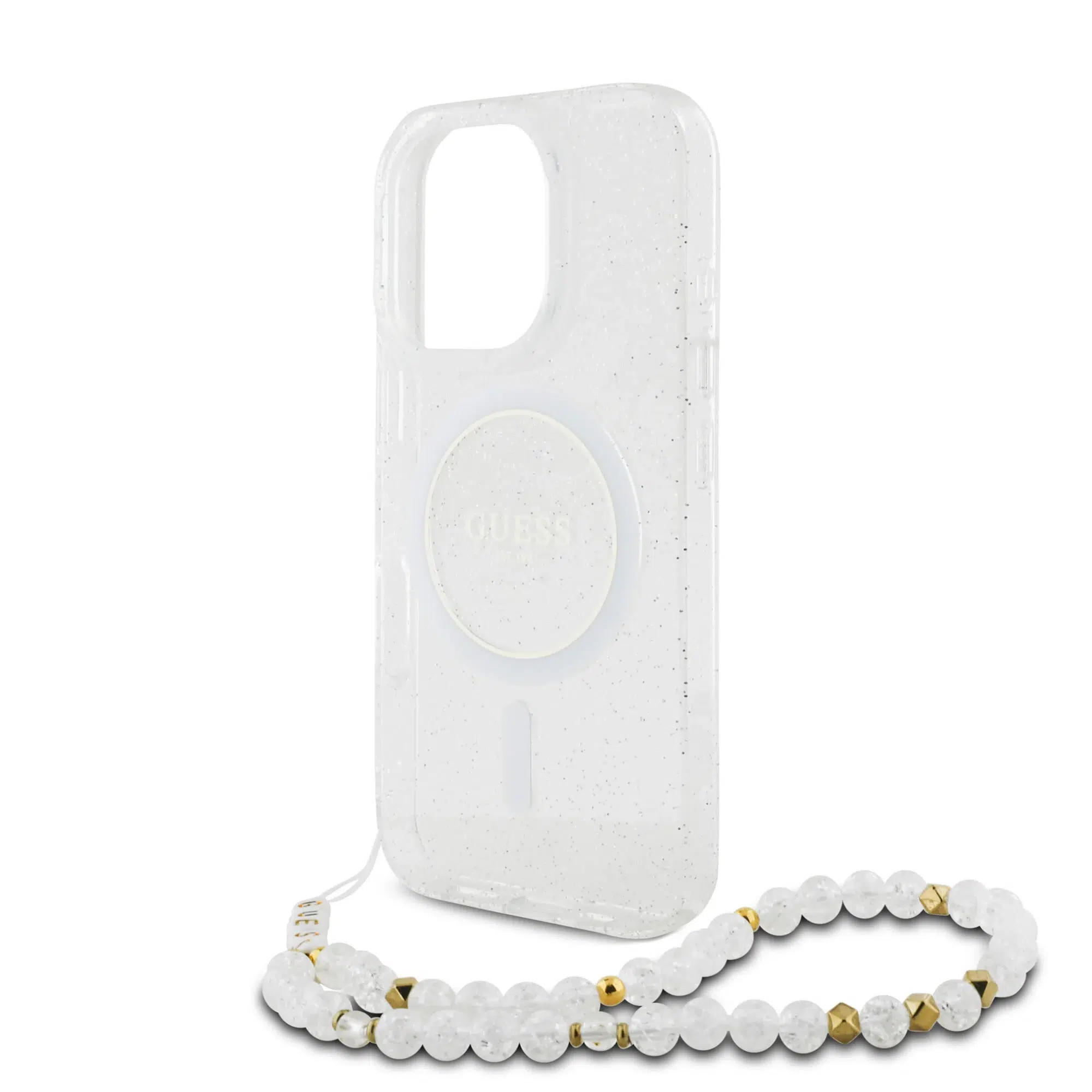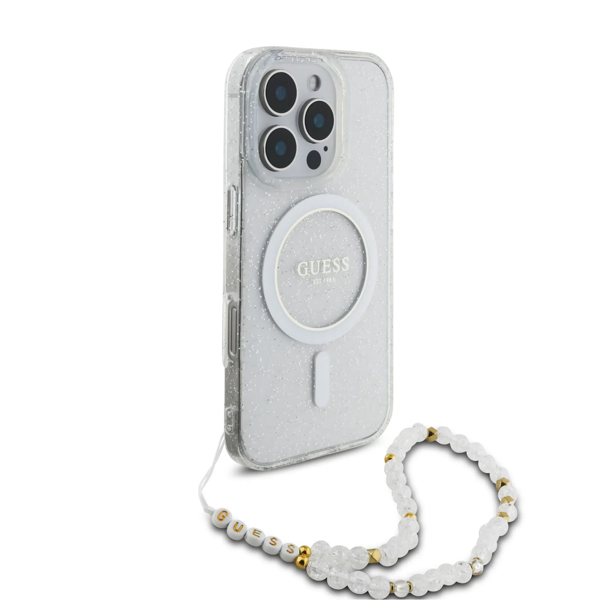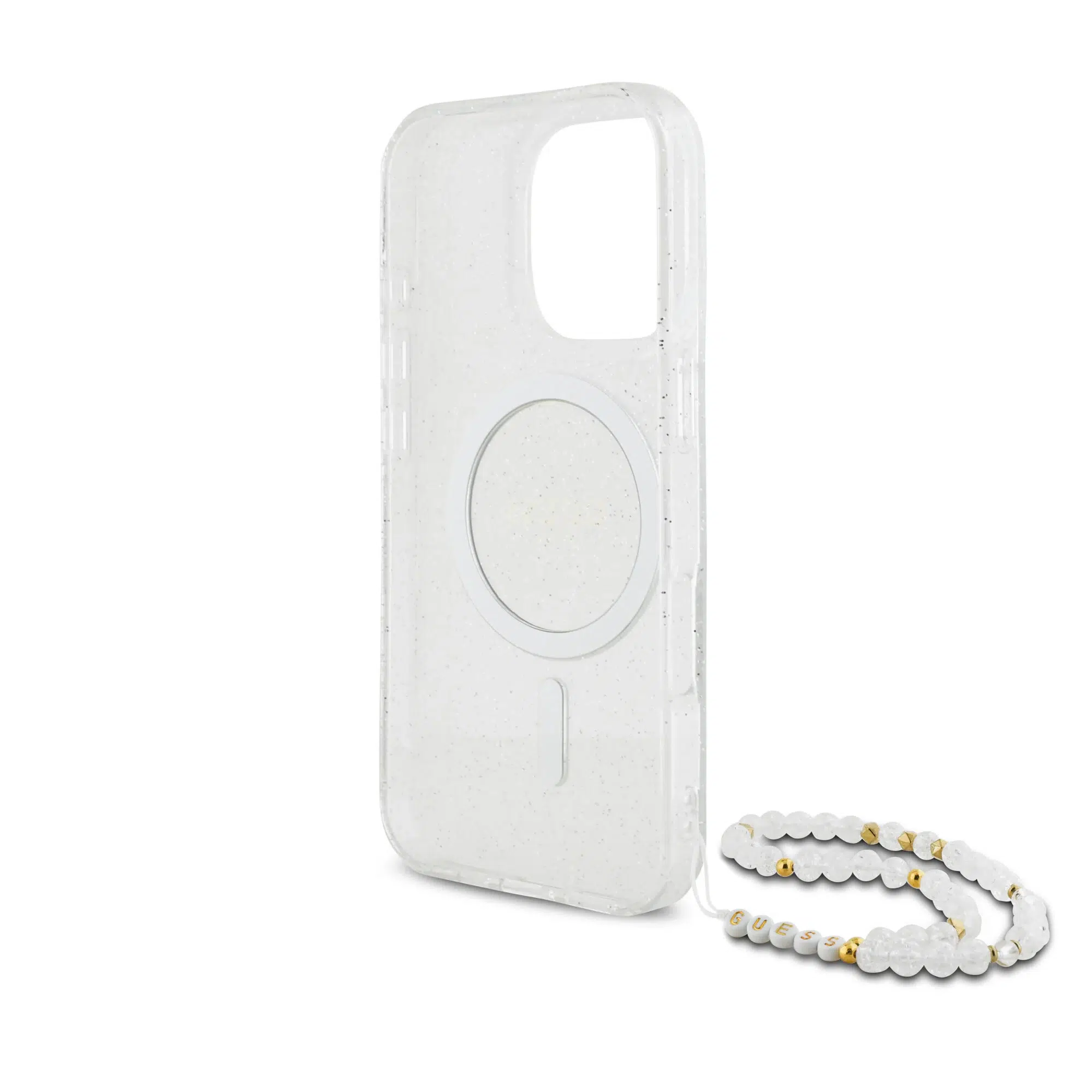 Guess – Backcover iPhone 16 Pro – Magsafe IML Glitter with pearls strap – Transparent