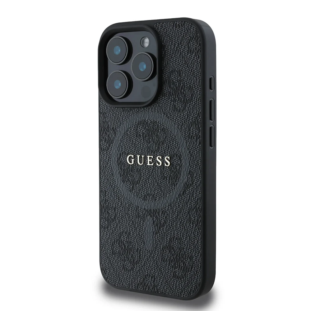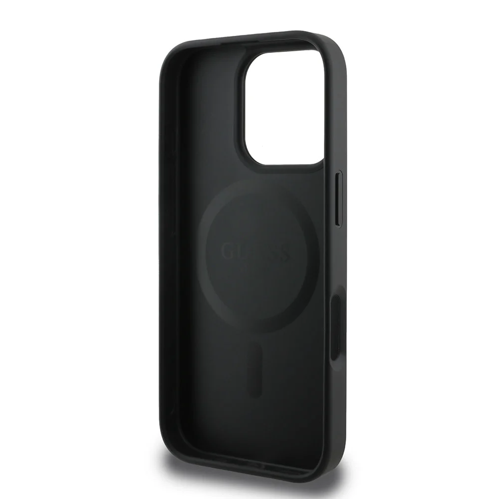 Guess – iPhone 16 Pro Backcover hoesje Magsafe PU 4G ring – Zwart