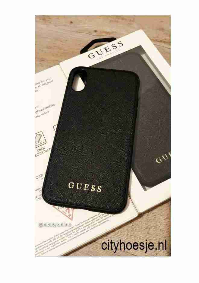 GUESS – Goud logo Backcover Zwart – iPhone XR