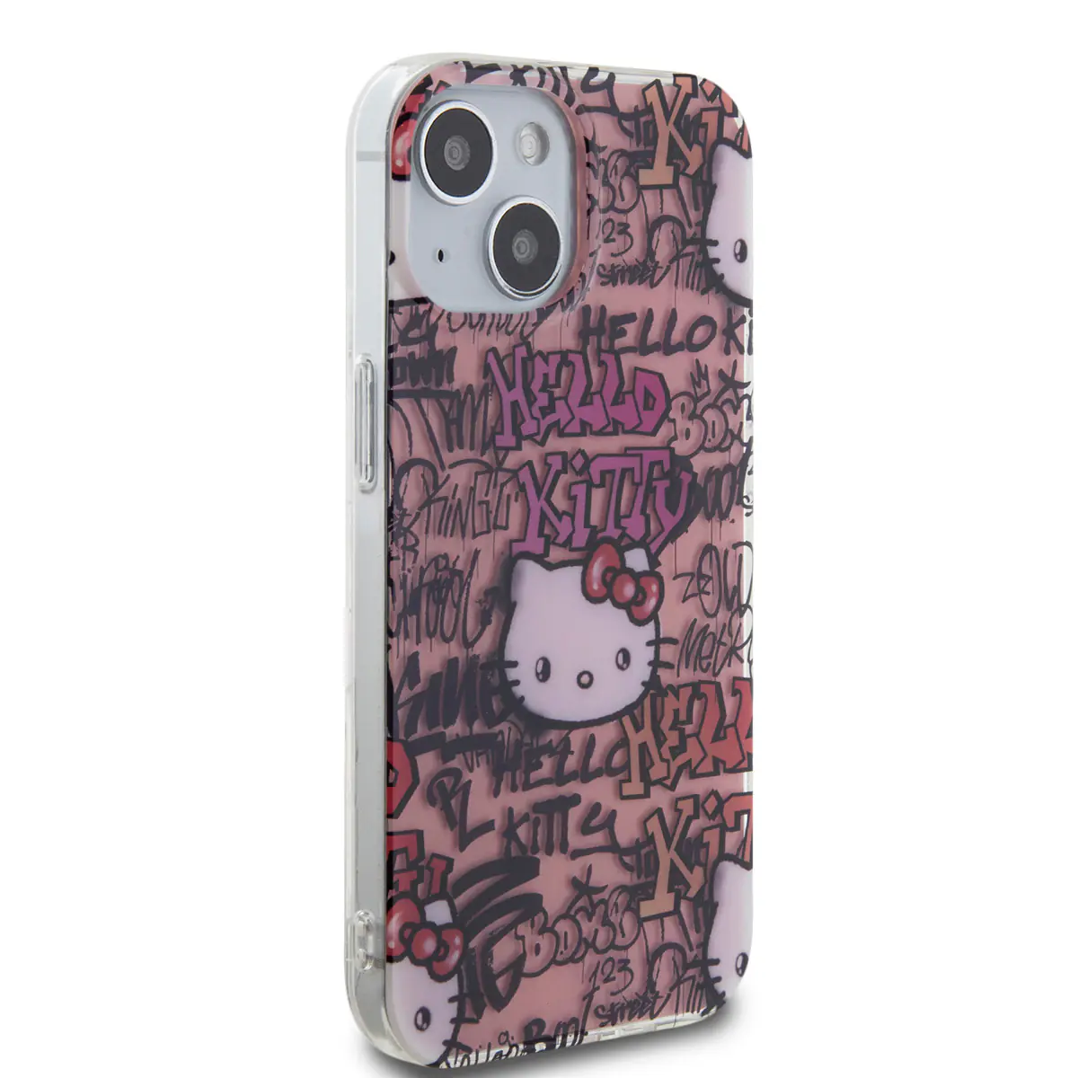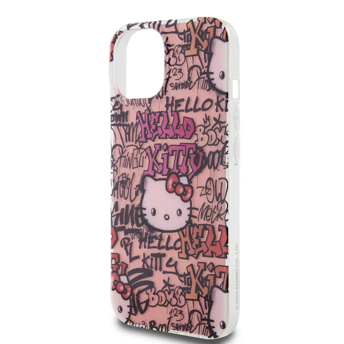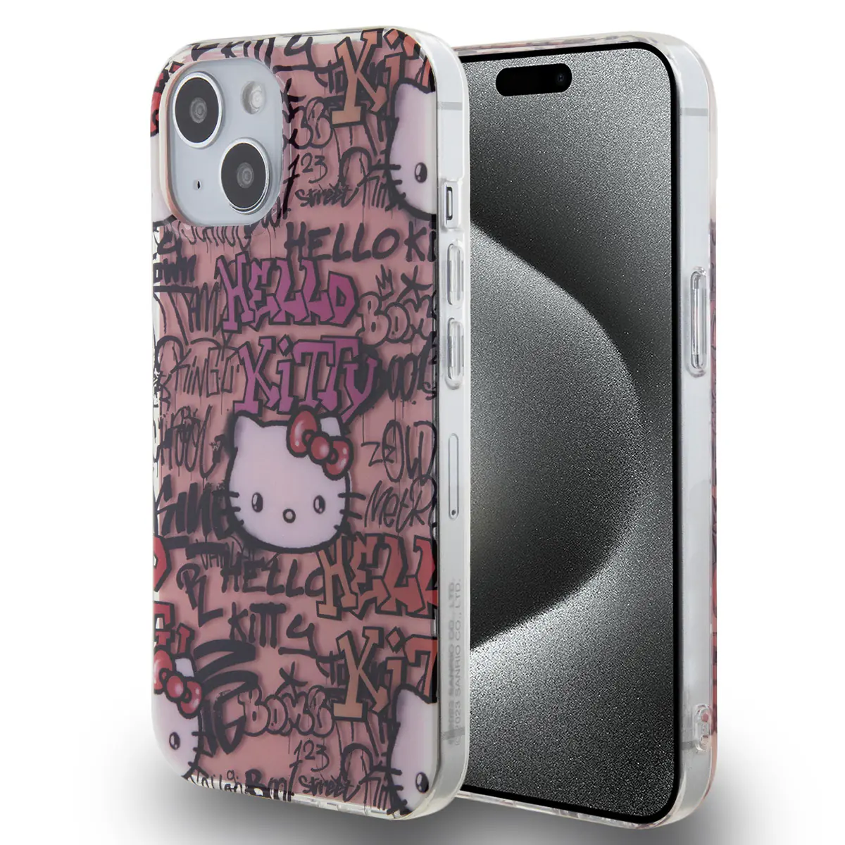 Hello Kitty – Backcover iPhone 15 – Graffiti Tags – Roze