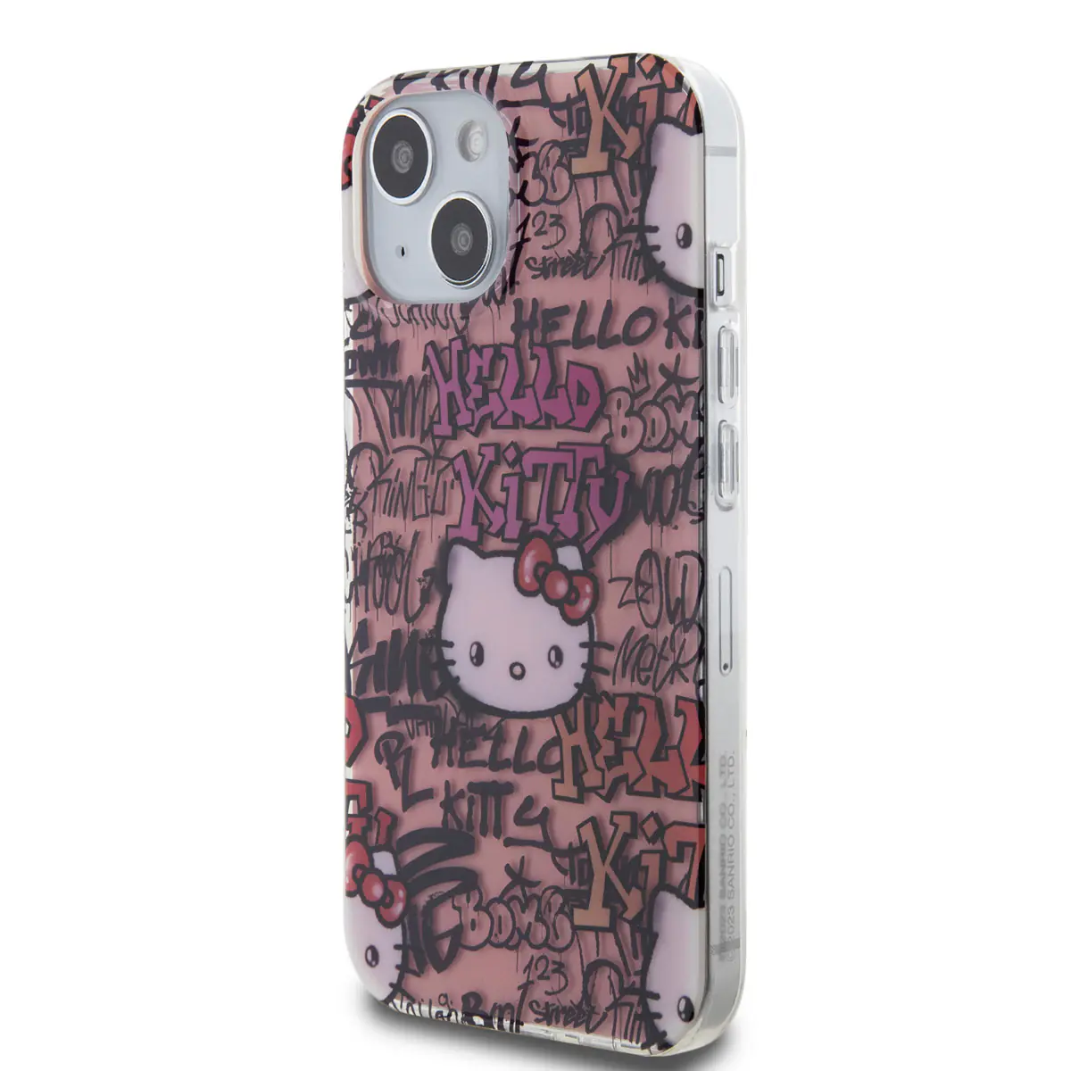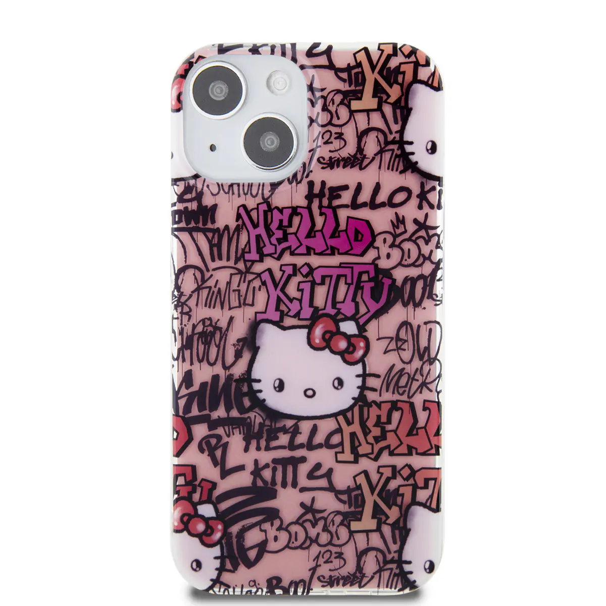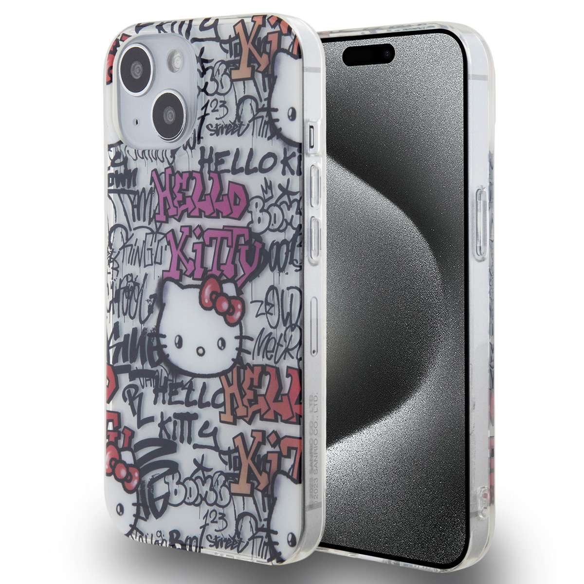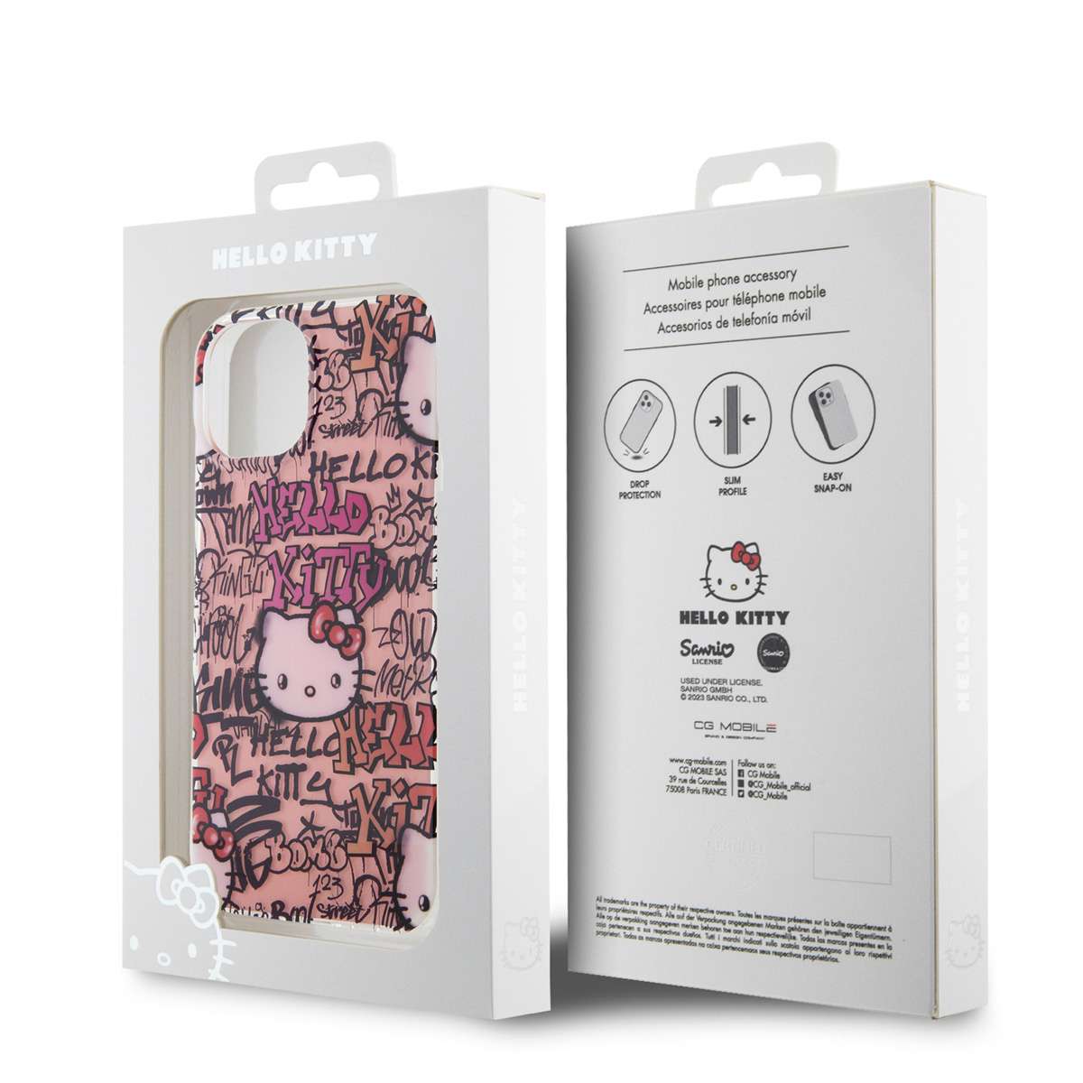 Hello Kitty – Backcover iPhone 15 – Graffiti Tags – Roze