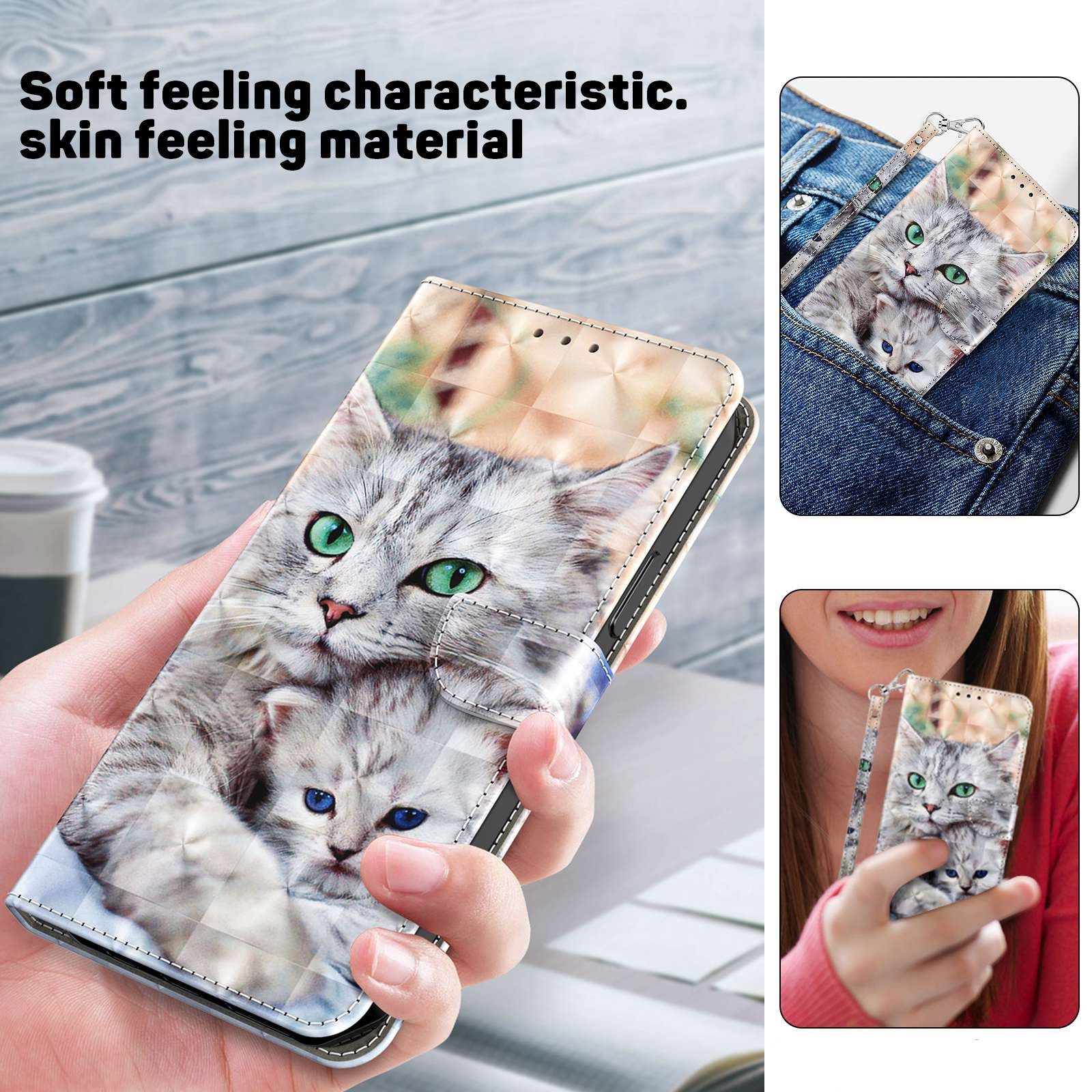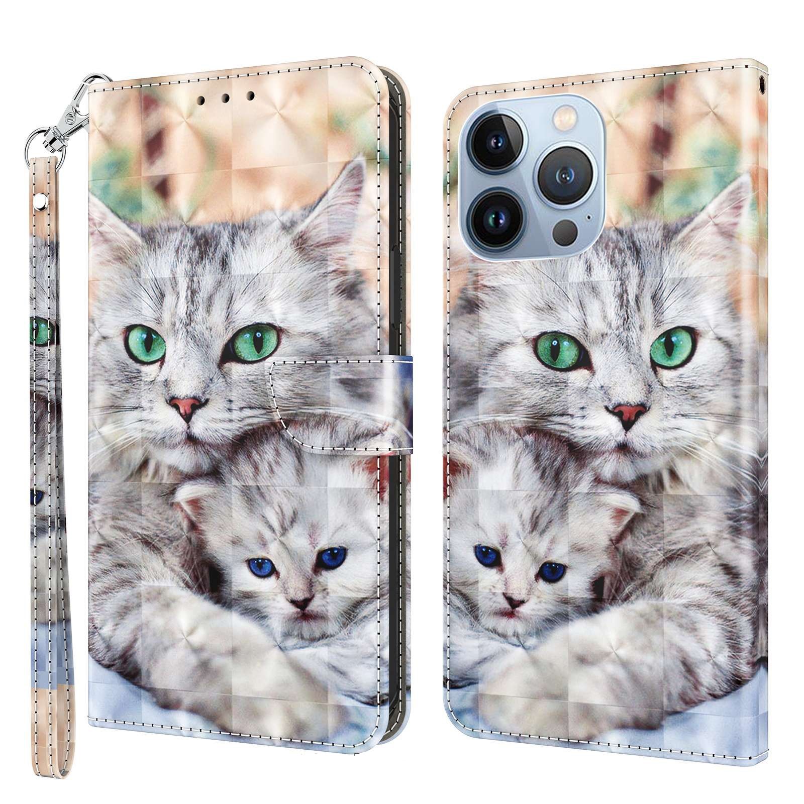 Cityhoesje – Bookcase iPhone 14 Pro Max – 3D – katten – incl. Pasjeshouder