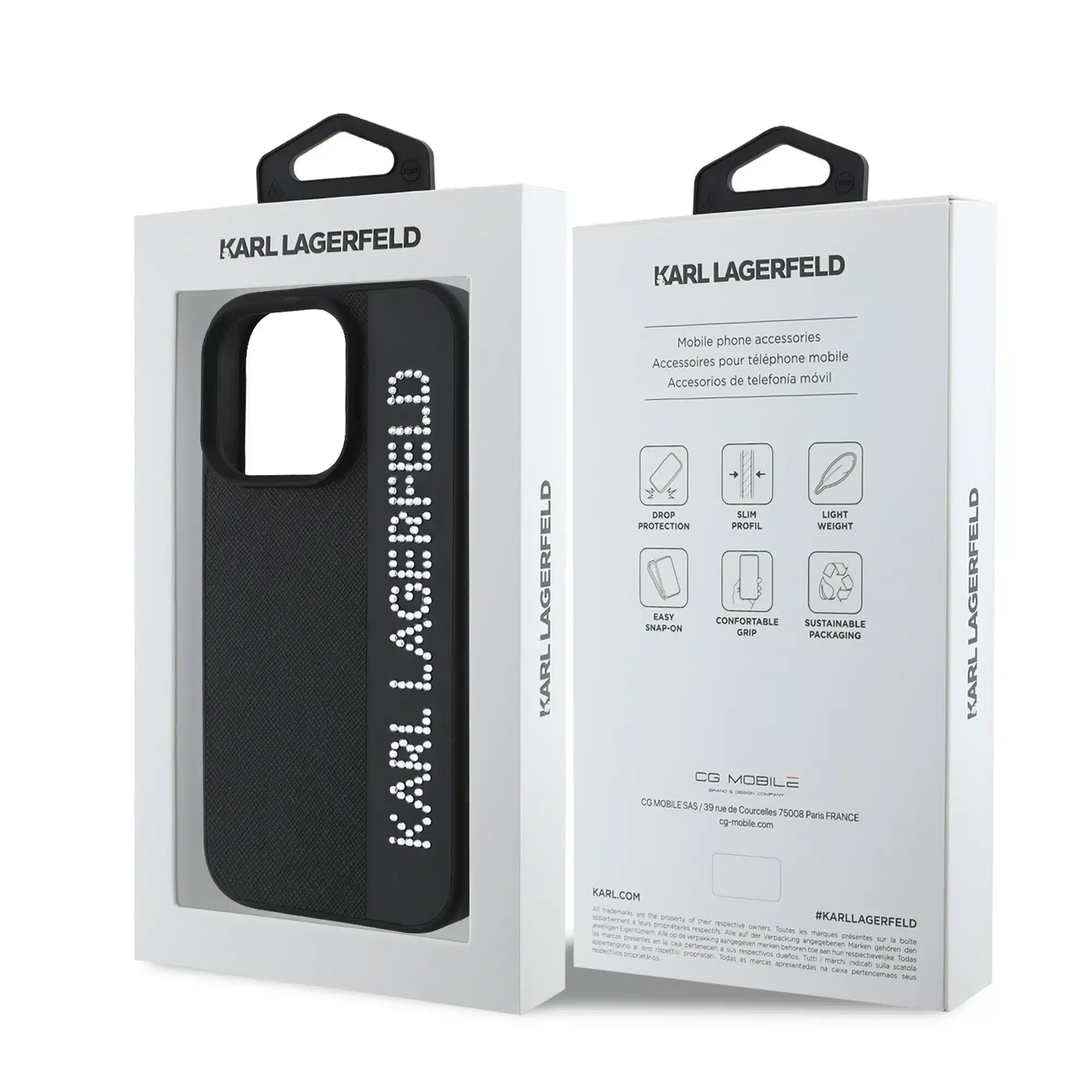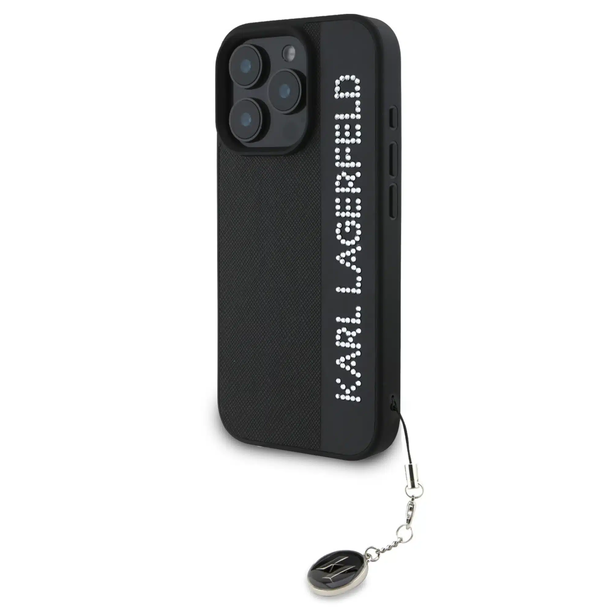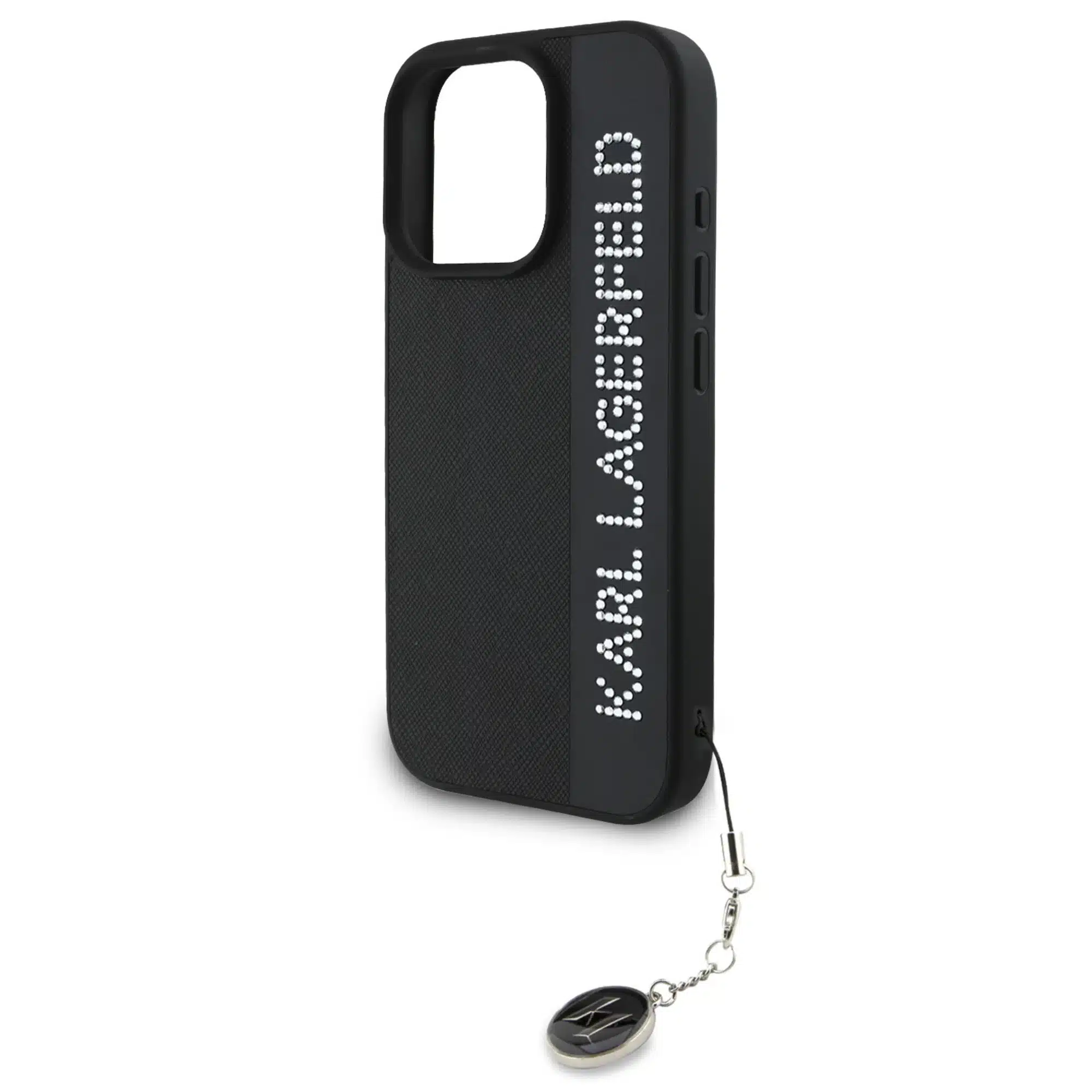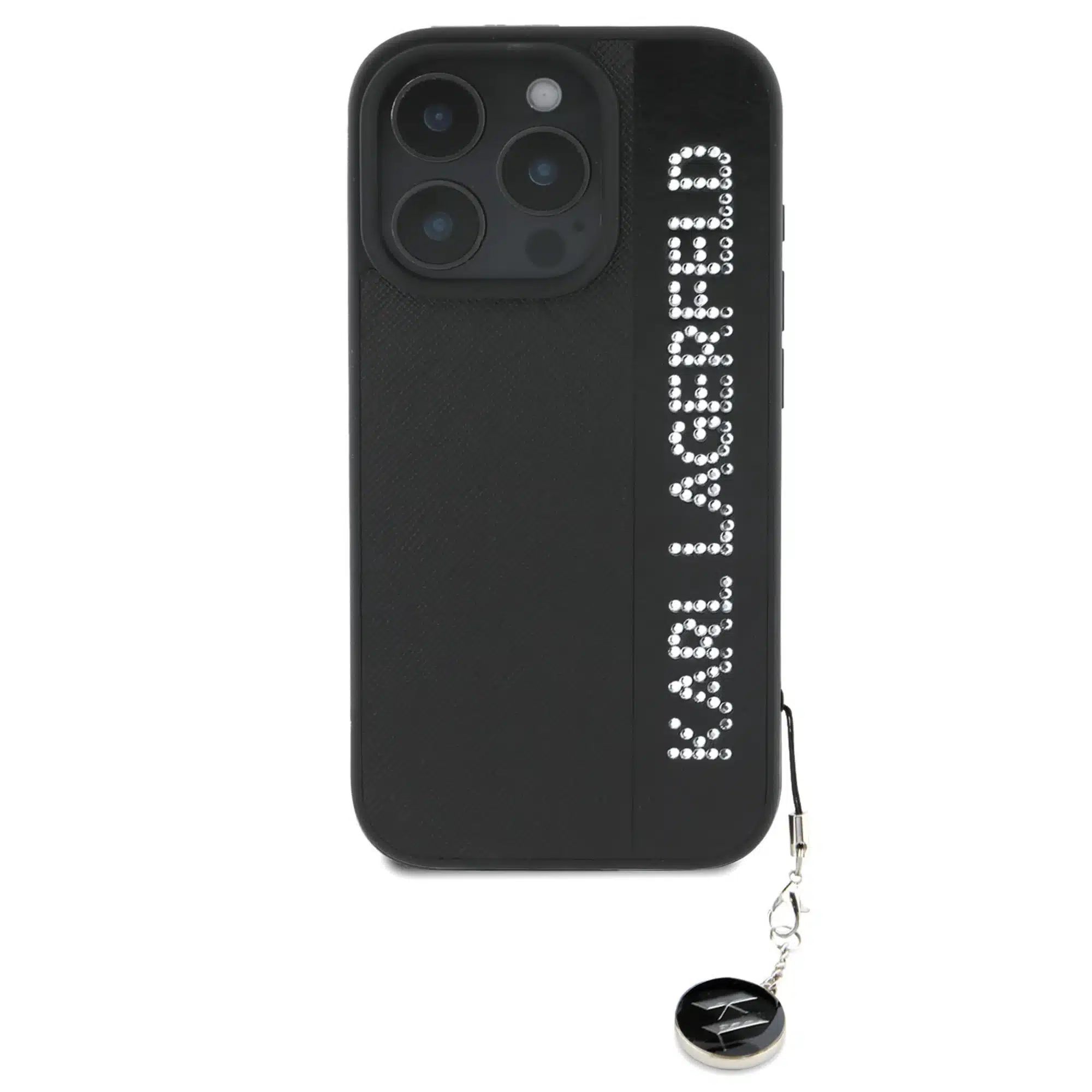 Karl Lagerfeld – Backcover iPhone 16 Pro – Saffiano rhinestones and charm – Zwart