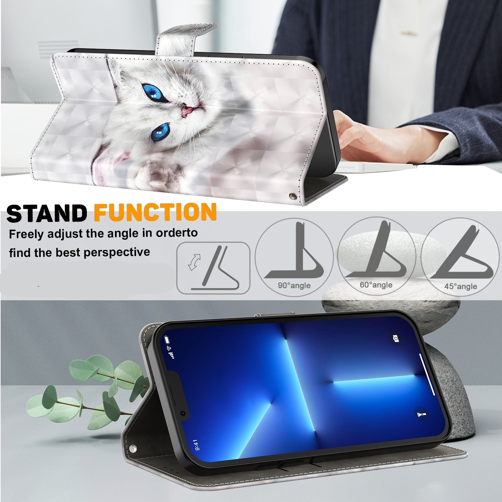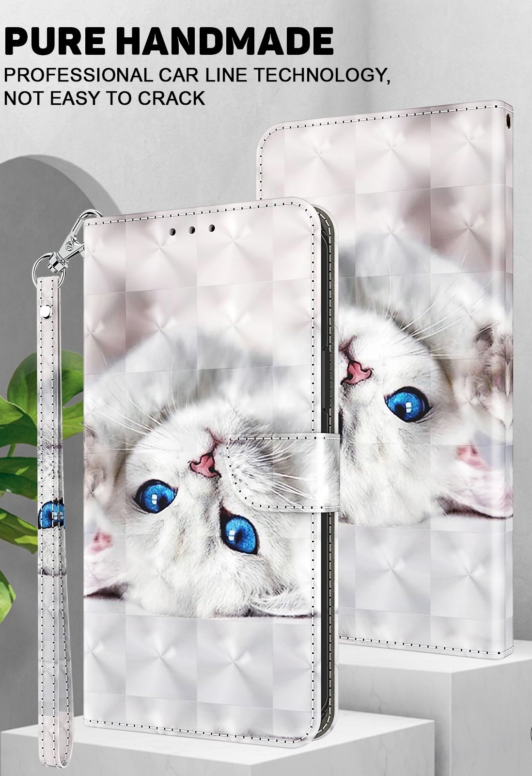 Cityhoesje – iPhone X / XS – Bookcase – 3D katten Wit – incl. Pasjeshouder –