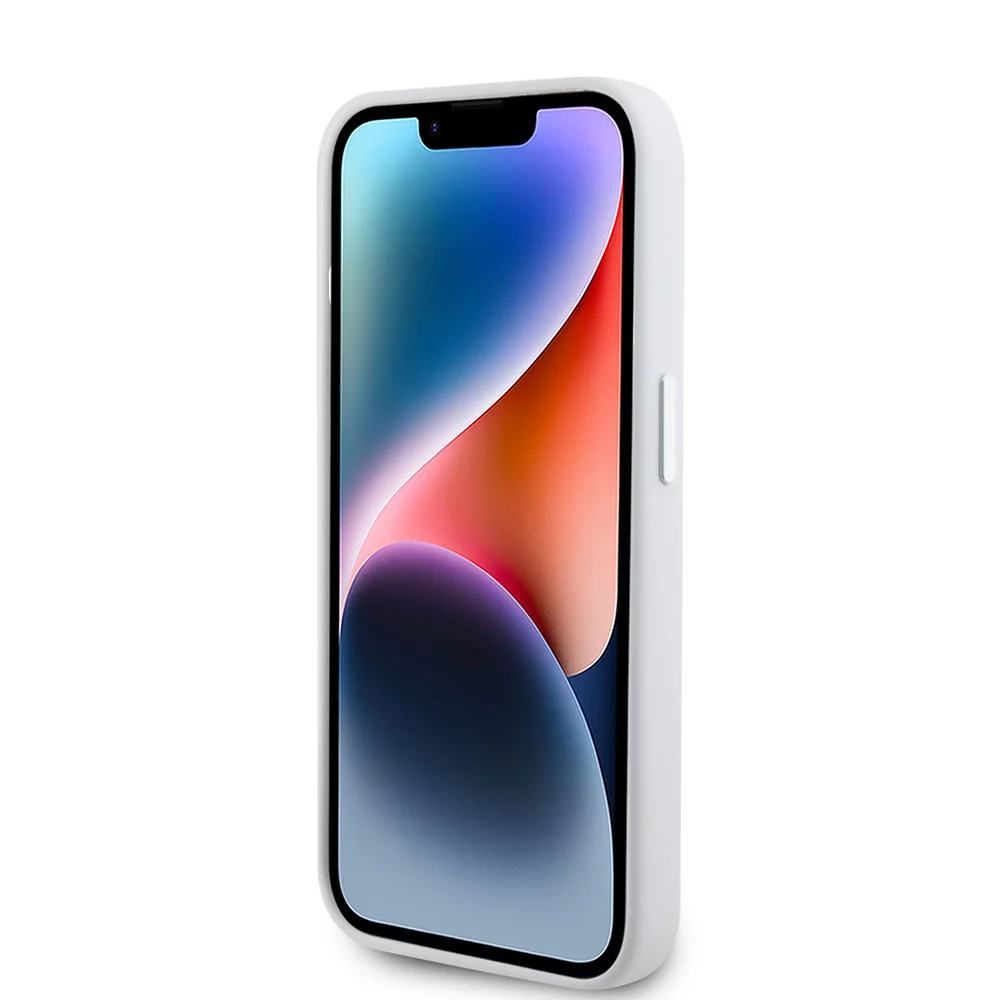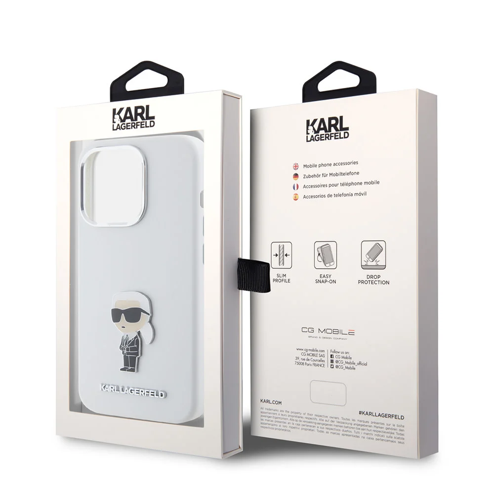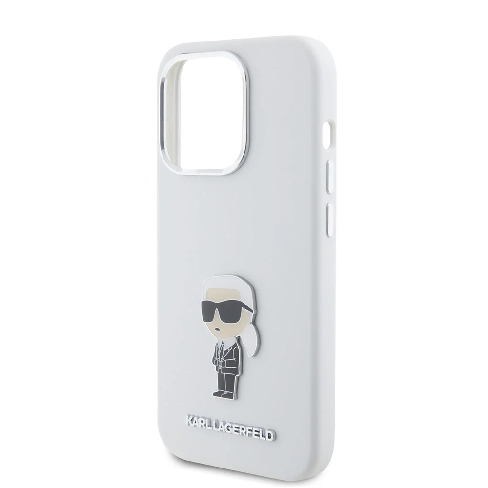 Karl Lagerfeld – Backcover iPhone 15 Pro – Ikonik metal pin – Wit