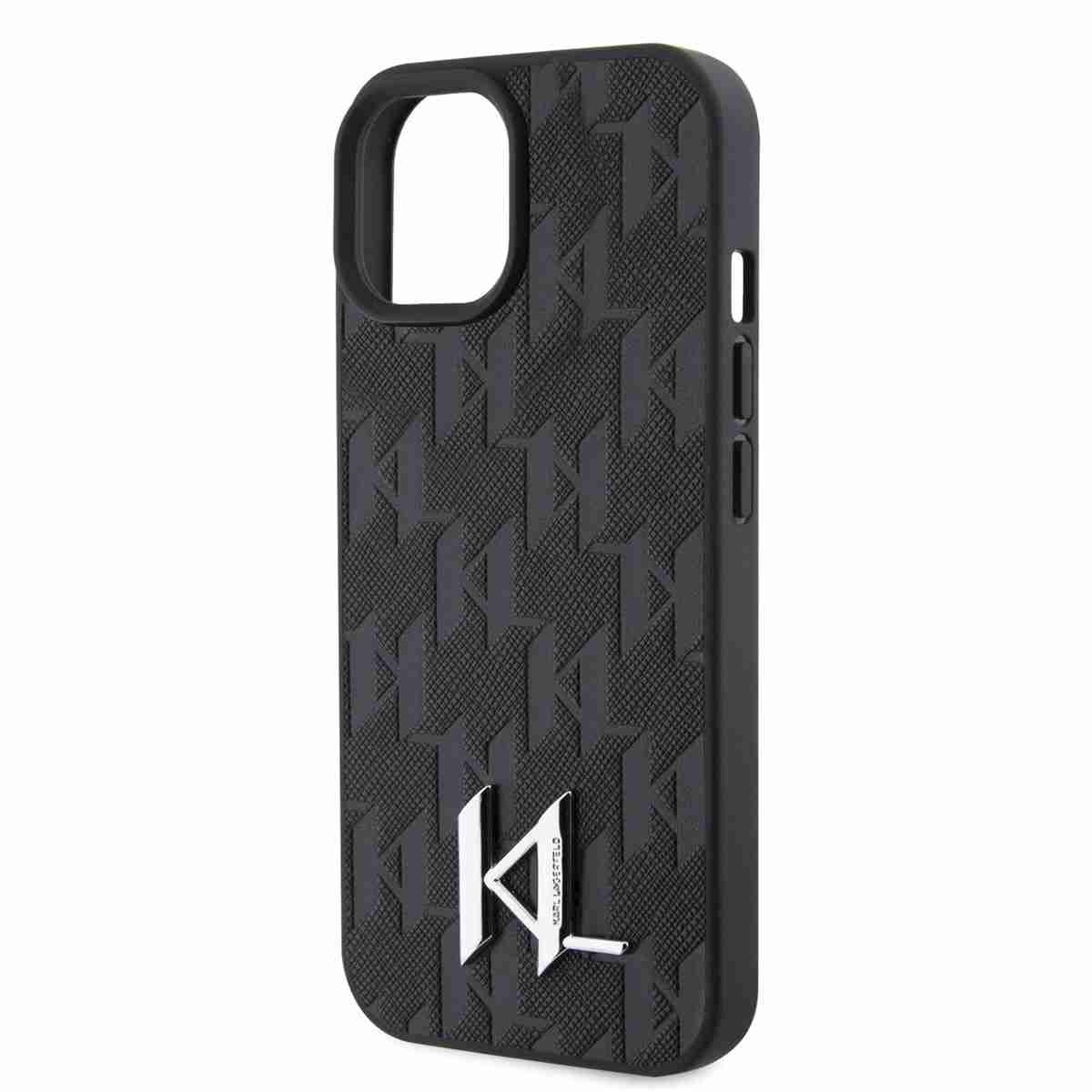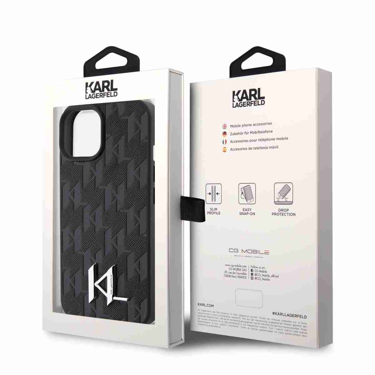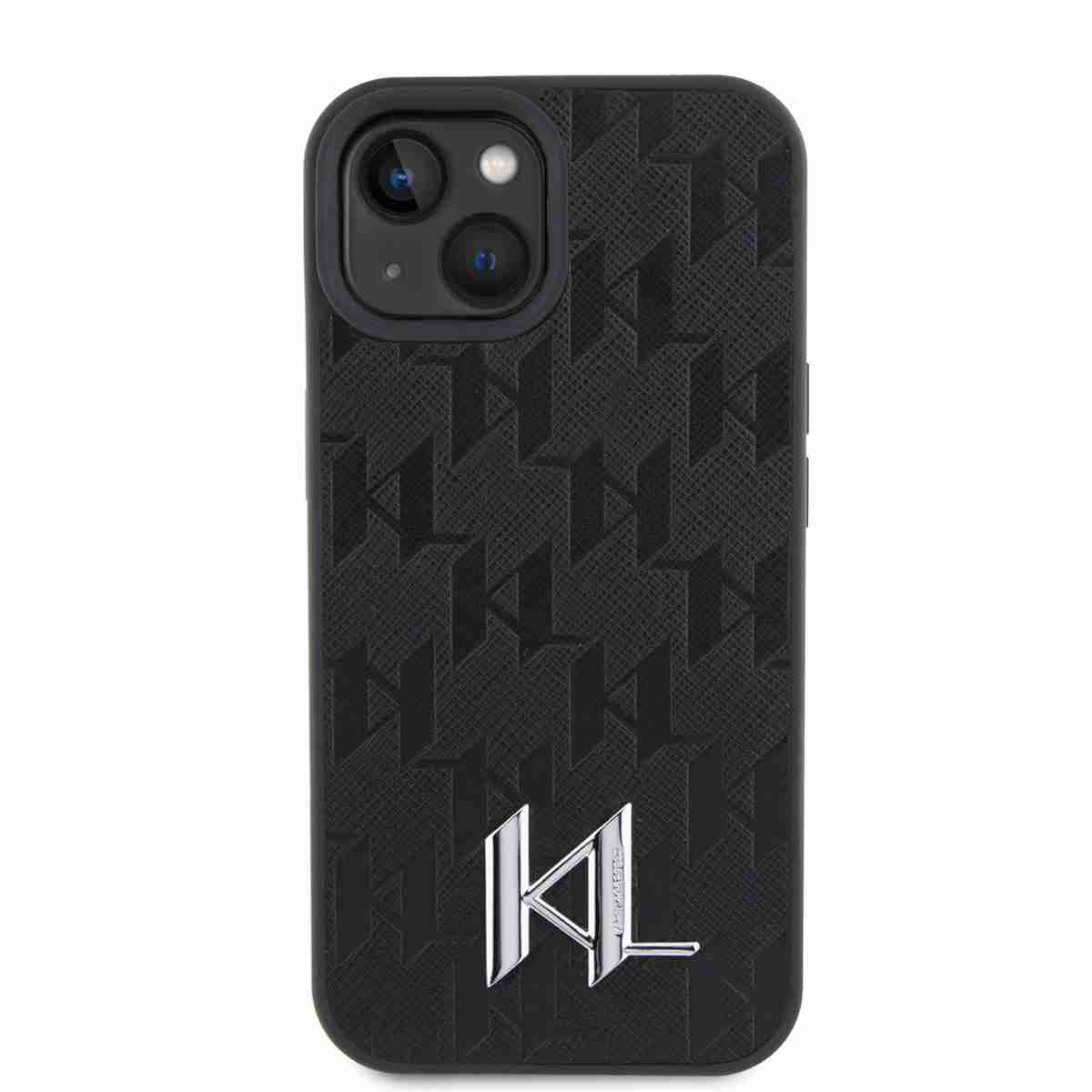 Karl Lagerfeld – Backcover iPhone 15 – Hot Stamp – KL Metal Logo – Monogram – Zwart